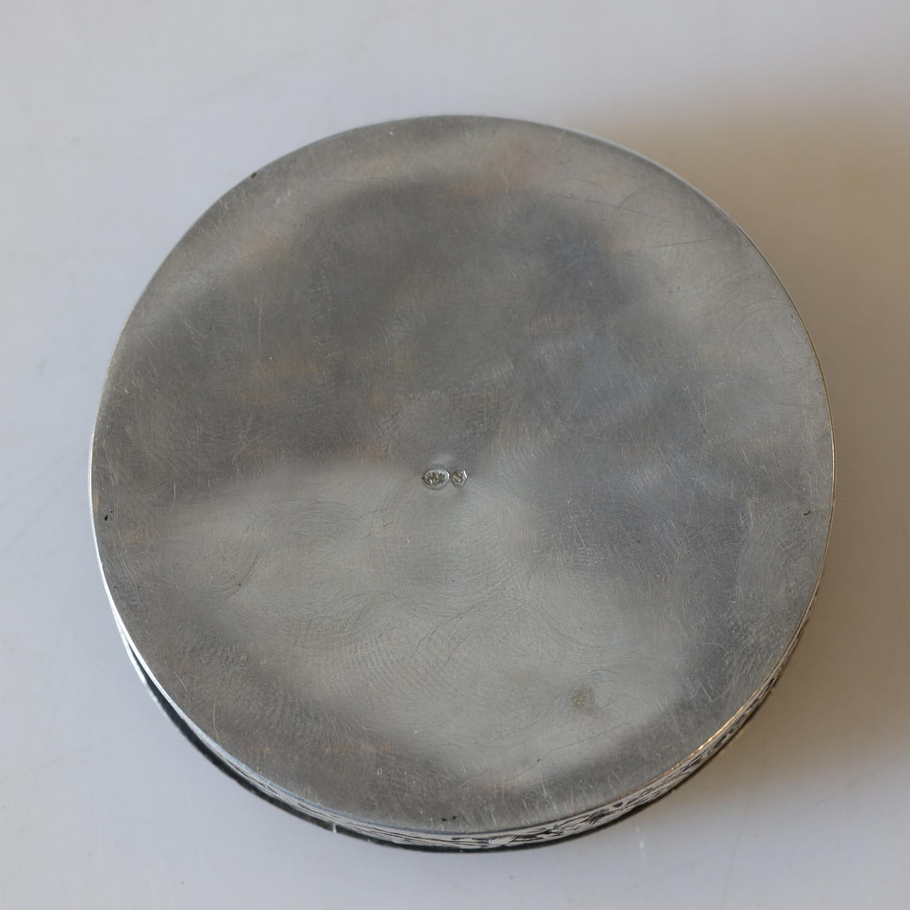 Diameter ca. 6,5 cm. Højde ca. 1,5 cm.