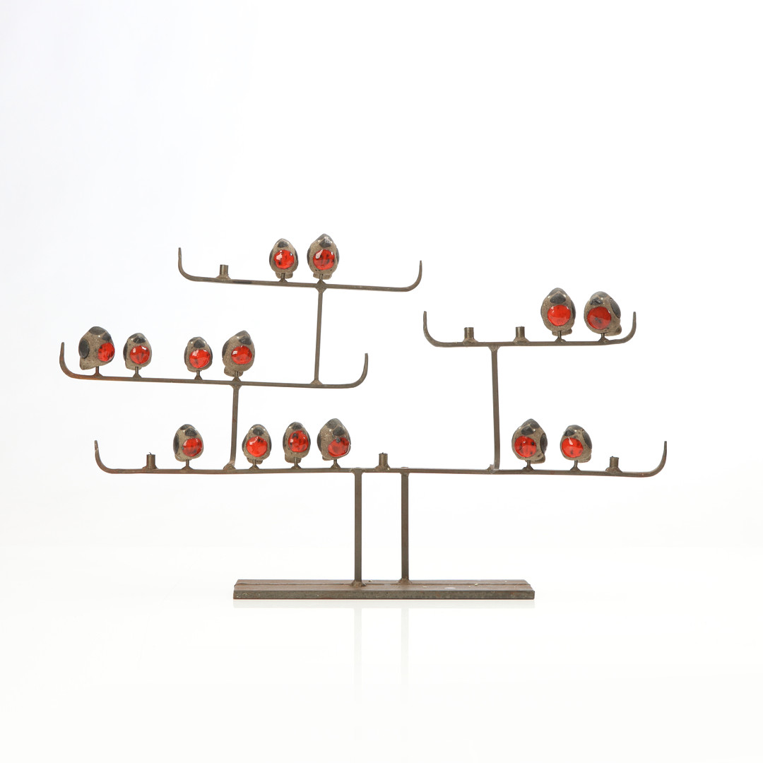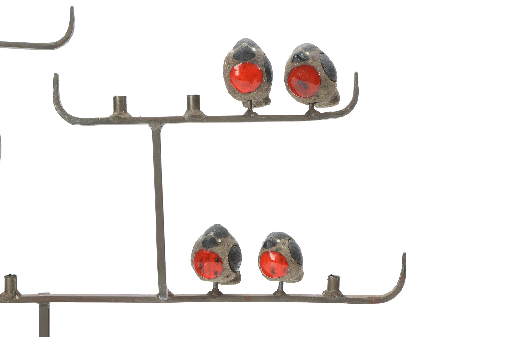 4397162. THOMAS HELLSTRÖM, KANDELABER. Smedning med stentøjsfugle, Nittsjö 20. århundrede.