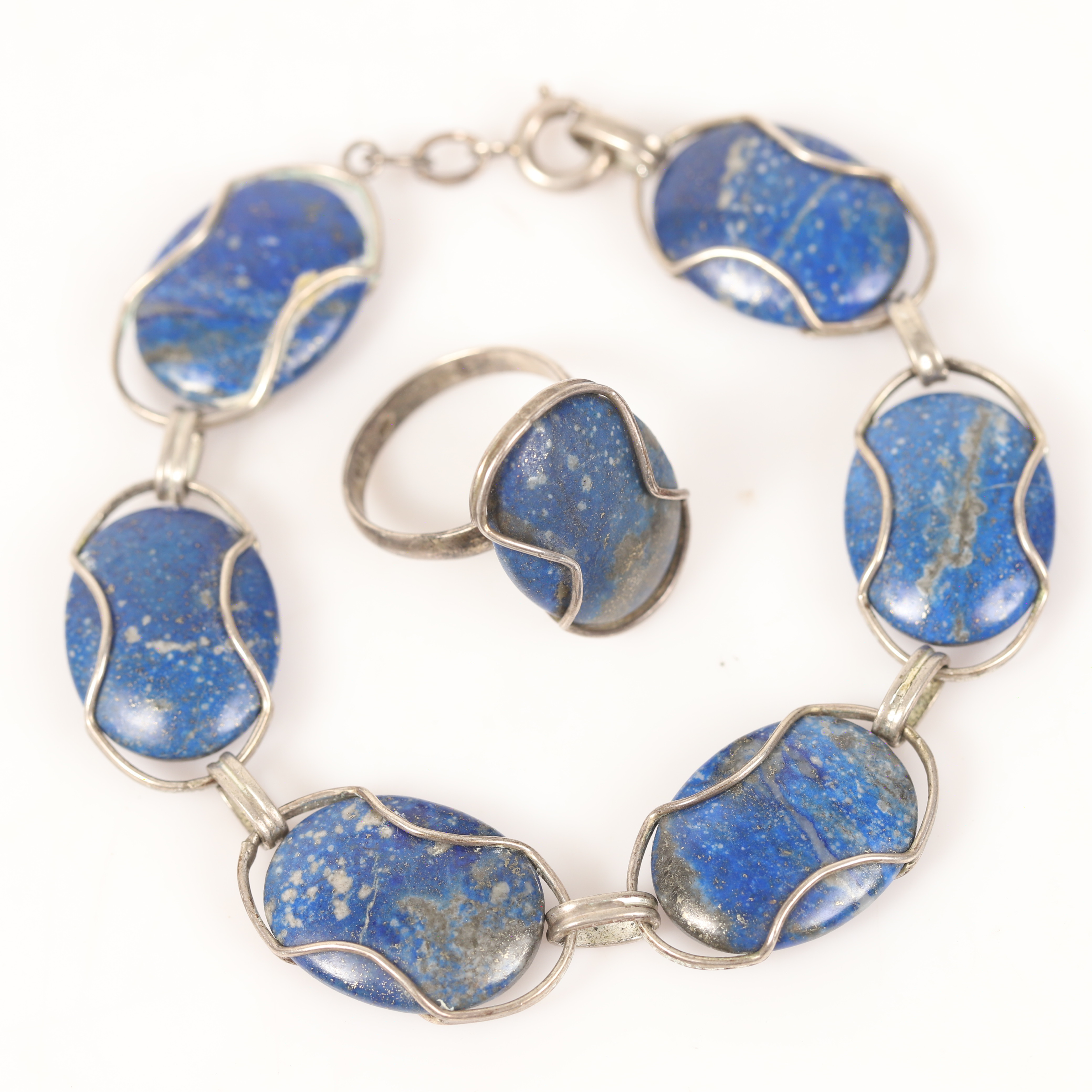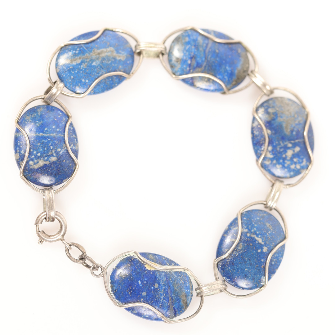 4397631. GARNÉR, 2 stykker, sølv med lapis lazuli.