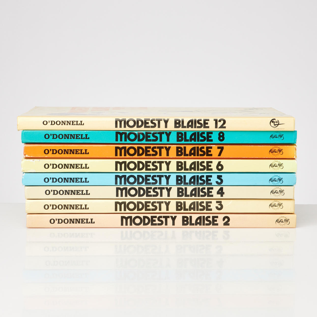 O'DONNELL, PETER (tekst); HOLDAWAY, JIM & ROMERO, ENRIQUE (billedet). I Modesty Blaise + Modesty Blaise 2-12 (9-11 mangler). Stockholm, Alvglans, 1983-99.