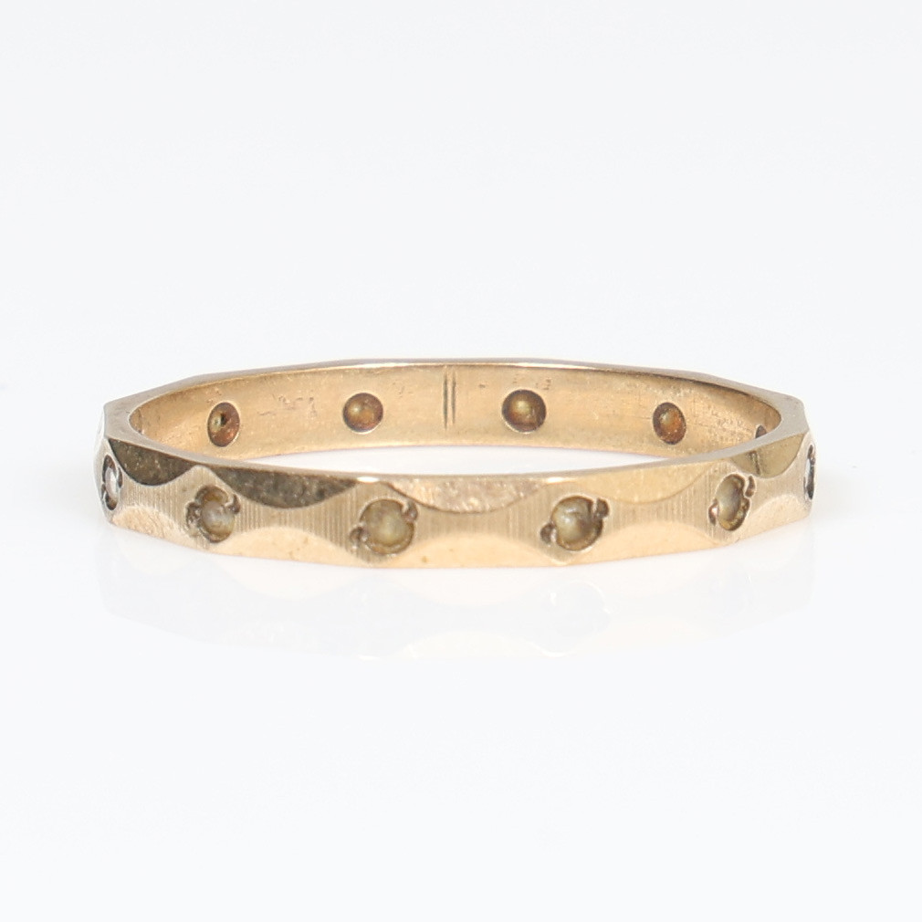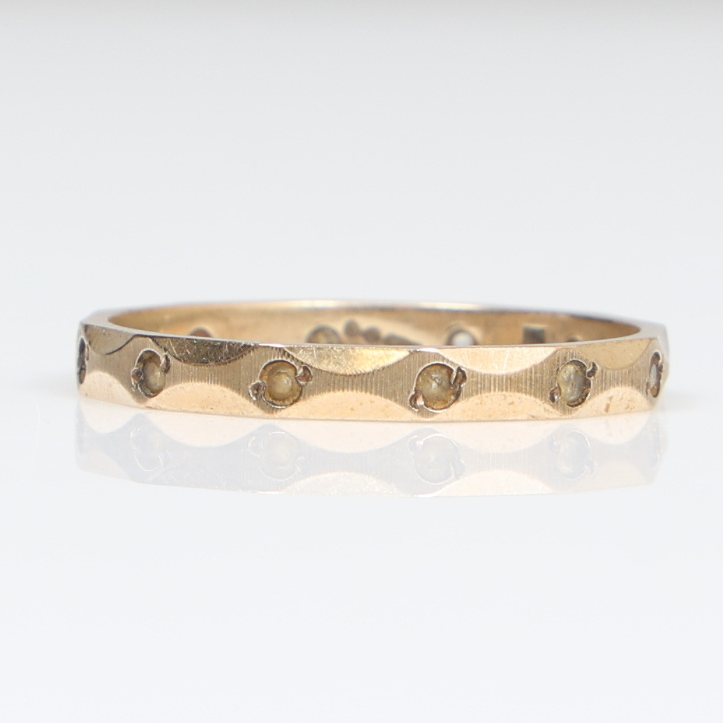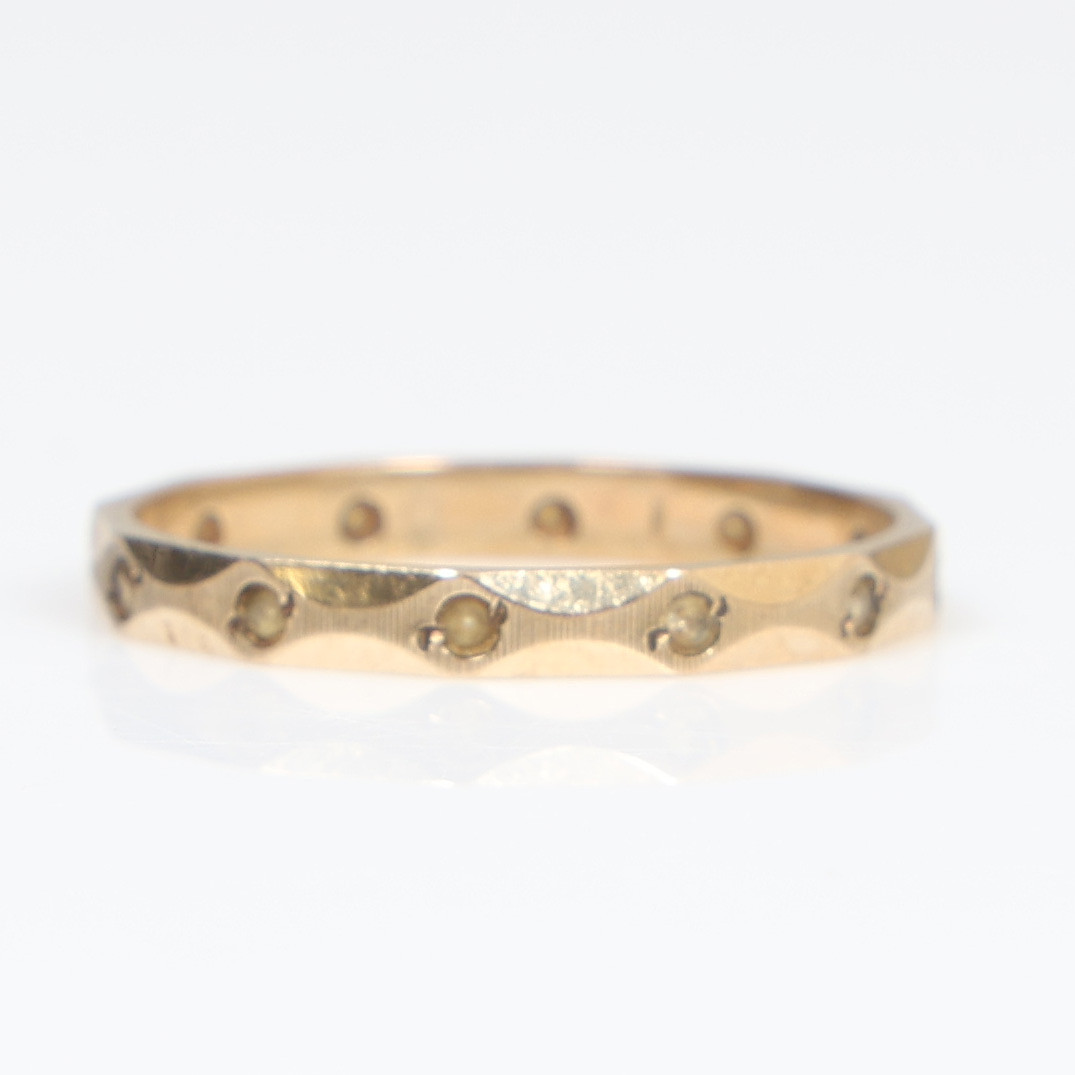 4400646. EN EVIGHEDSRING I 9 KARAT GULD OG KLAR PASTA.