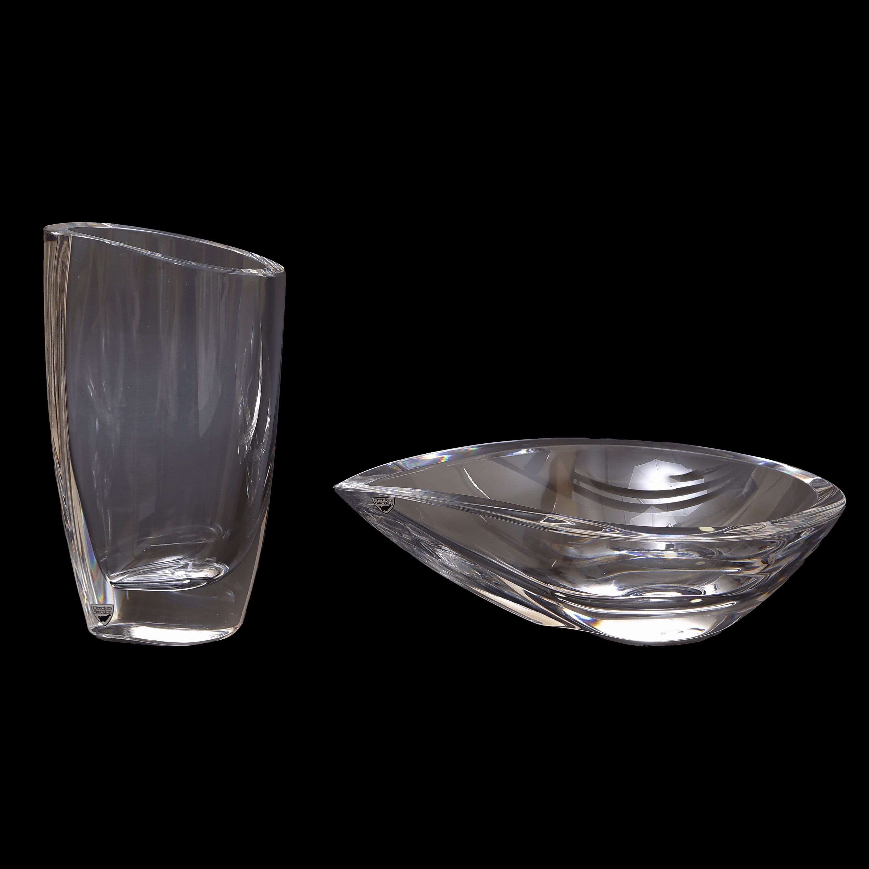 4401621. VASE OG SKÅL, KRYSTAL, ORREFORS.