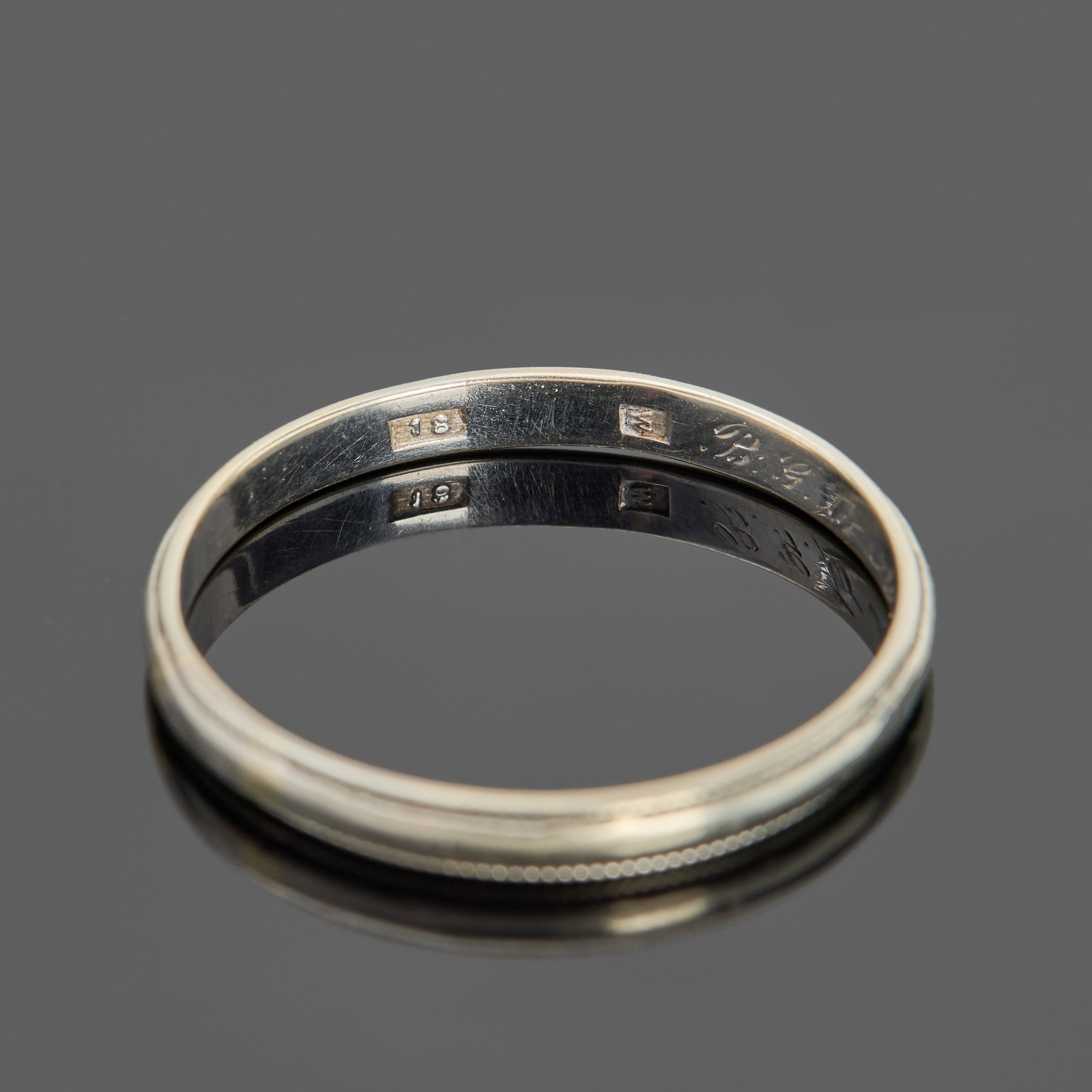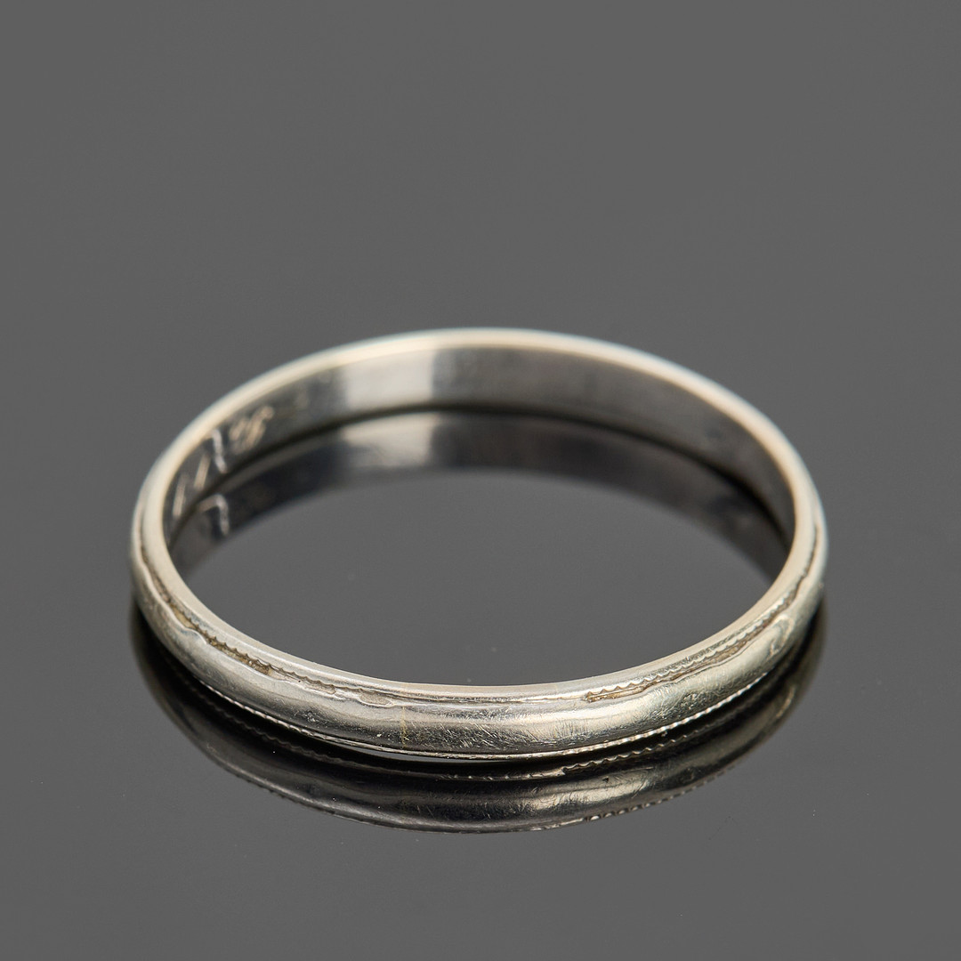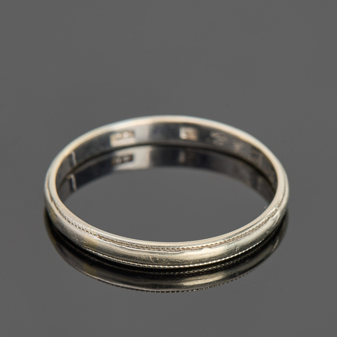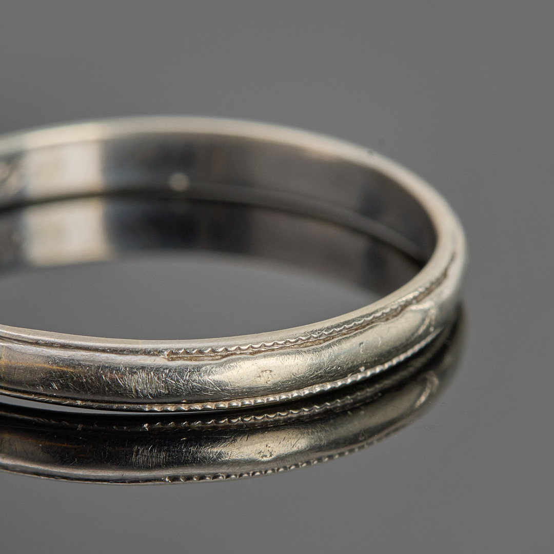 4402409. RING, 18 kt hvidguld, glat med mønstrede kanter.