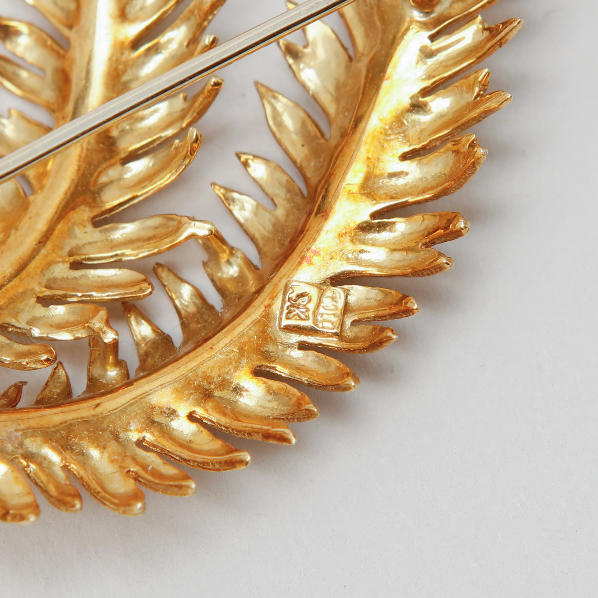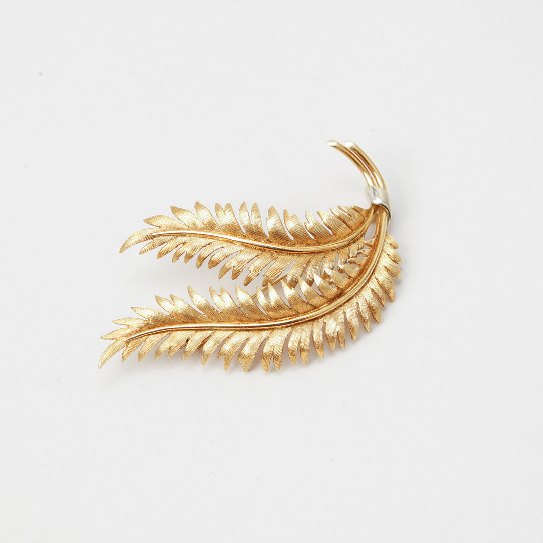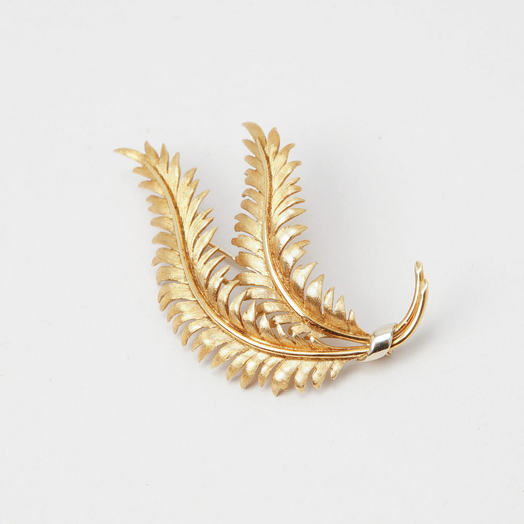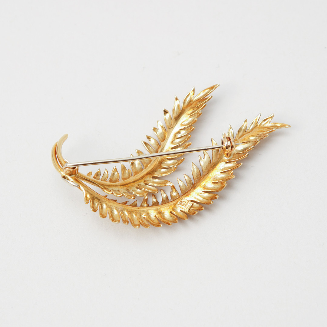 4402439. BROCHE, 18 kt. guld. Vægt ca. 11,6 gram.