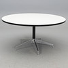 Rundplade i hvidt laminat. Metal chassis. Diameter 150 cm. Højde 73 cm.