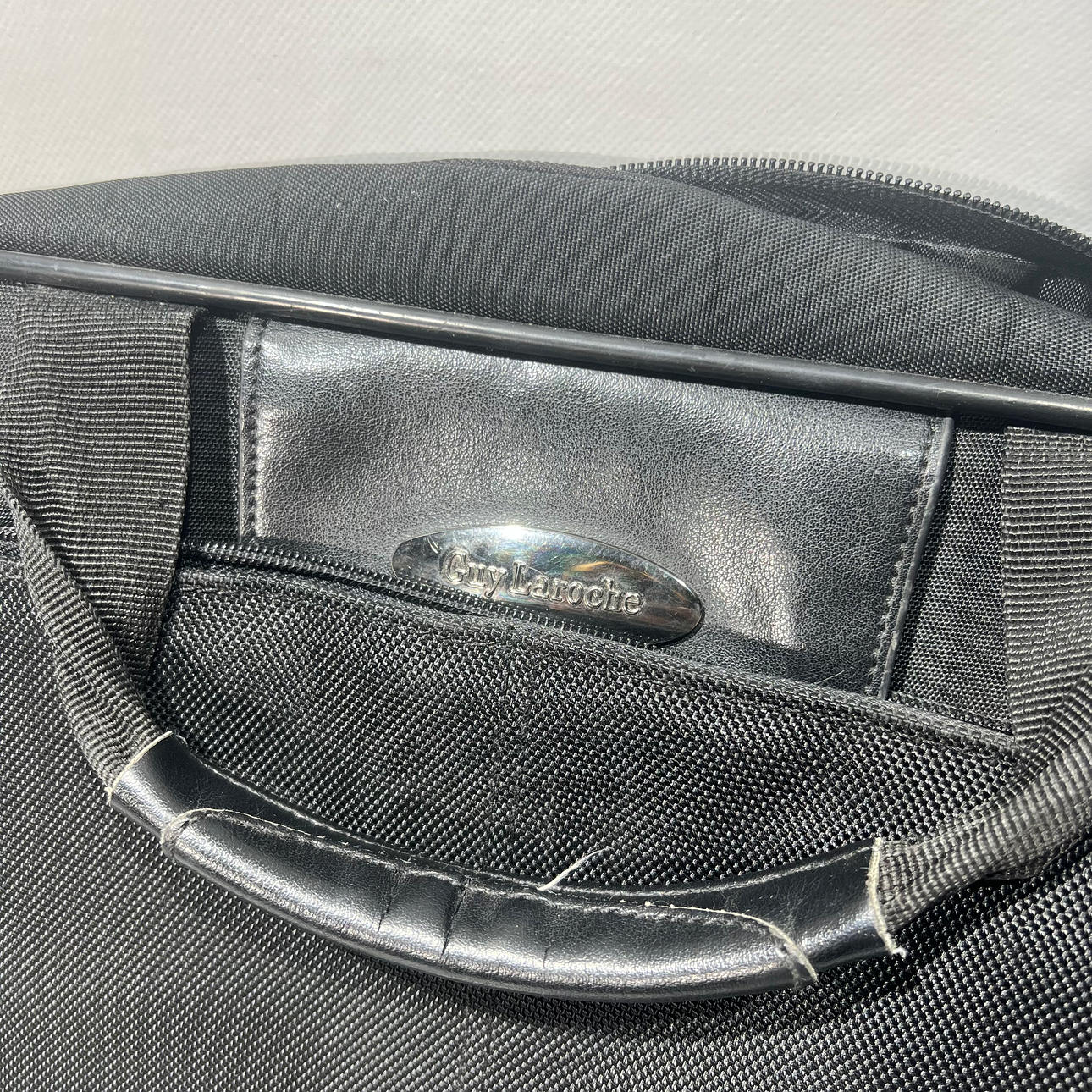 4403170. Guy Laroche. Computertaske i sort læder og lærred.