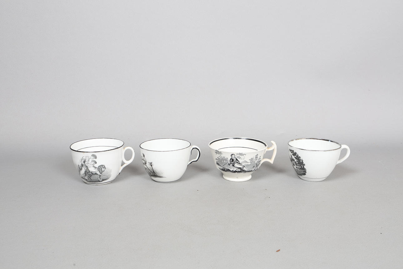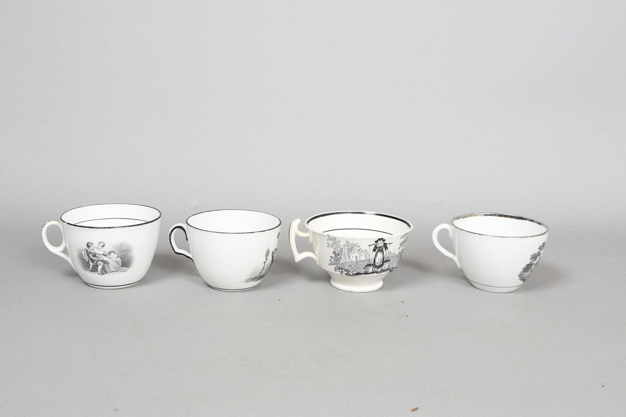 4403342. FIRE SORTE OG HVIDE TRANSFERKOPPER FRA 1800-TALLET (4).