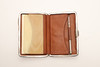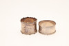 EN SØLV NOTECASE OG FIRE SERVIETRINGE.
