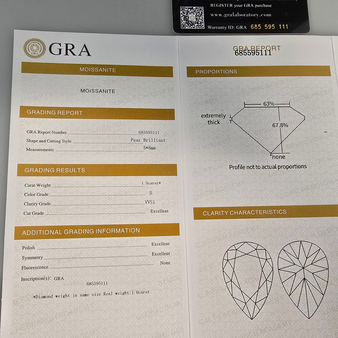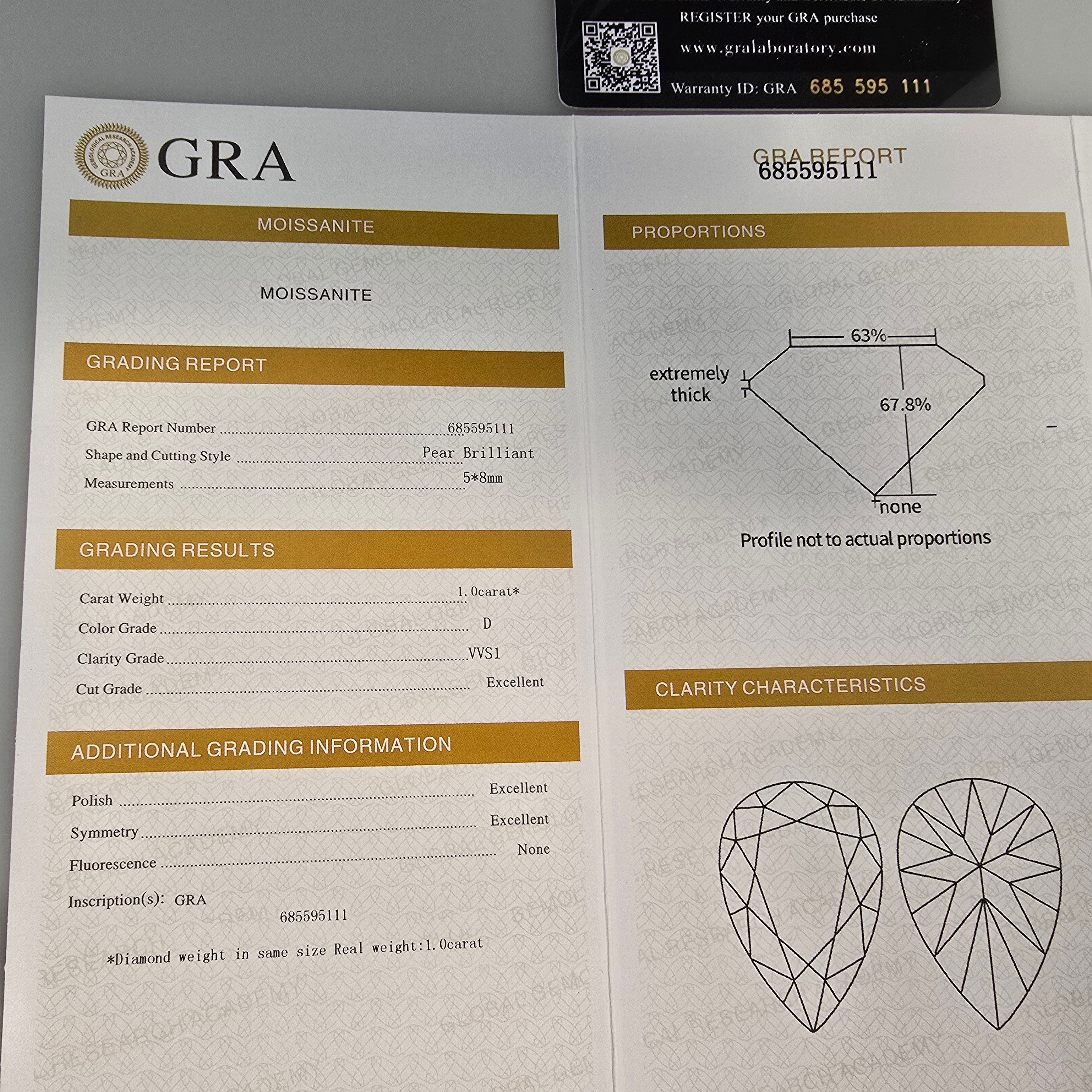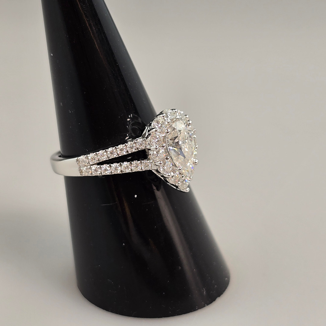 4404311. - Ring, 925 sølv, pæremoissanit, 1.00 ct.