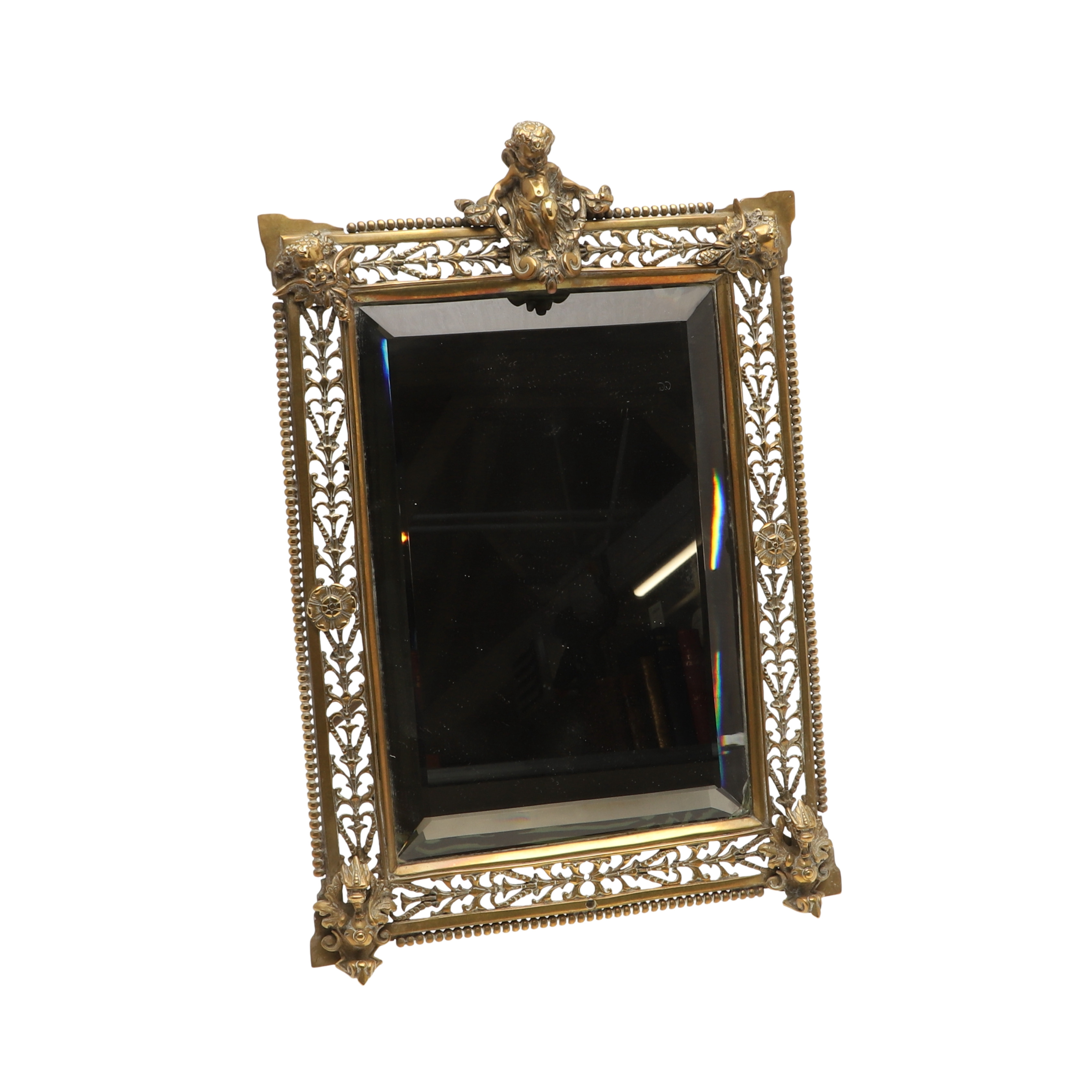 4407691. ANTIK MESSING STAFFELI SPEJL.