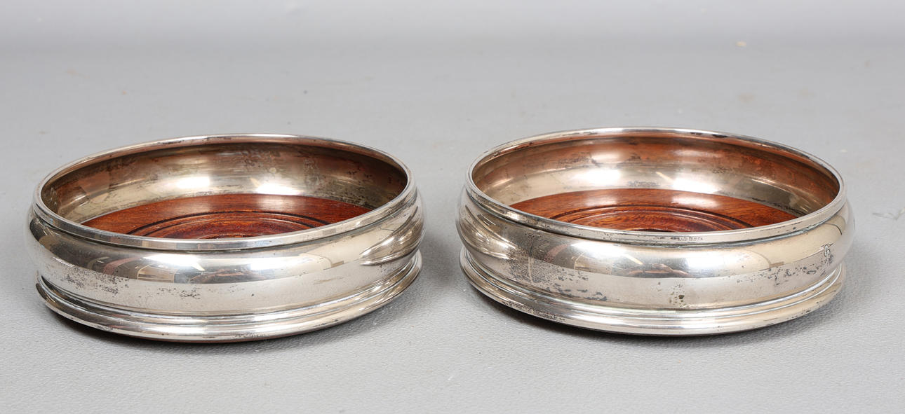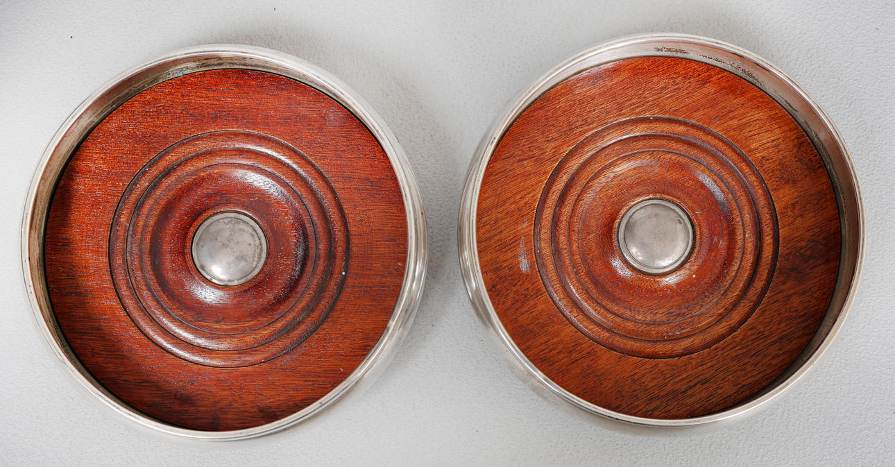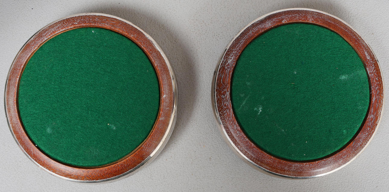 London 2000, producent MCH, de drejede træbaser med sølvrundeller til midten, 13 cm diameter, 3,5 cm høj.