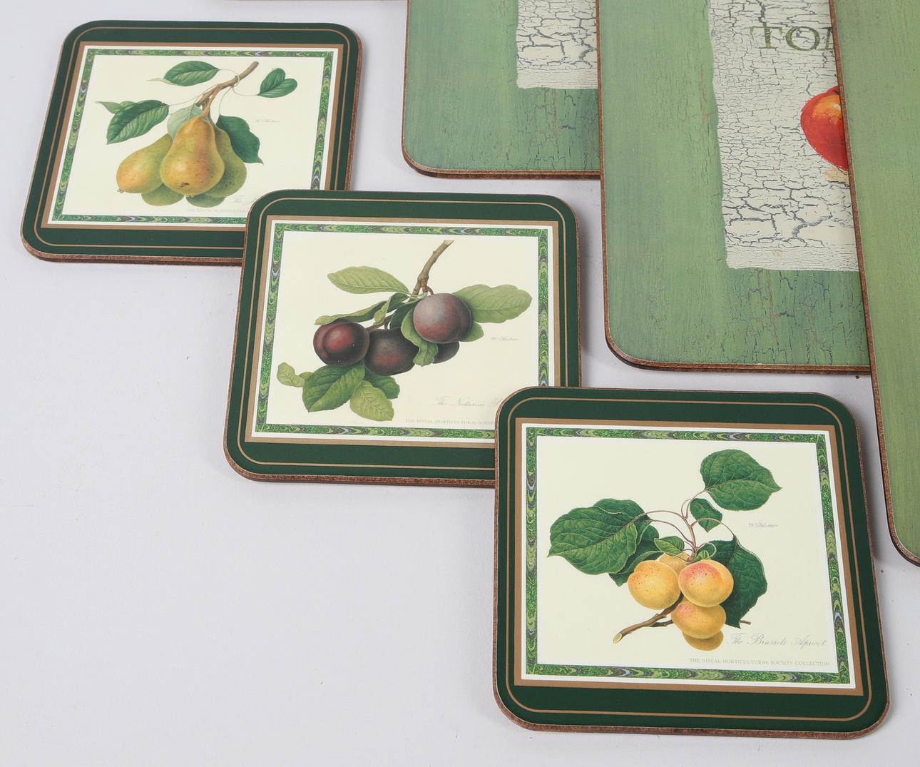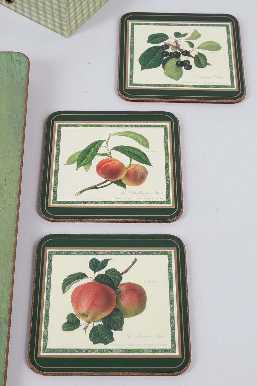 6 underlag, kork underside, „Hooker Fruits“, Pimpernel, mål ca. 10,5x10,5 cm