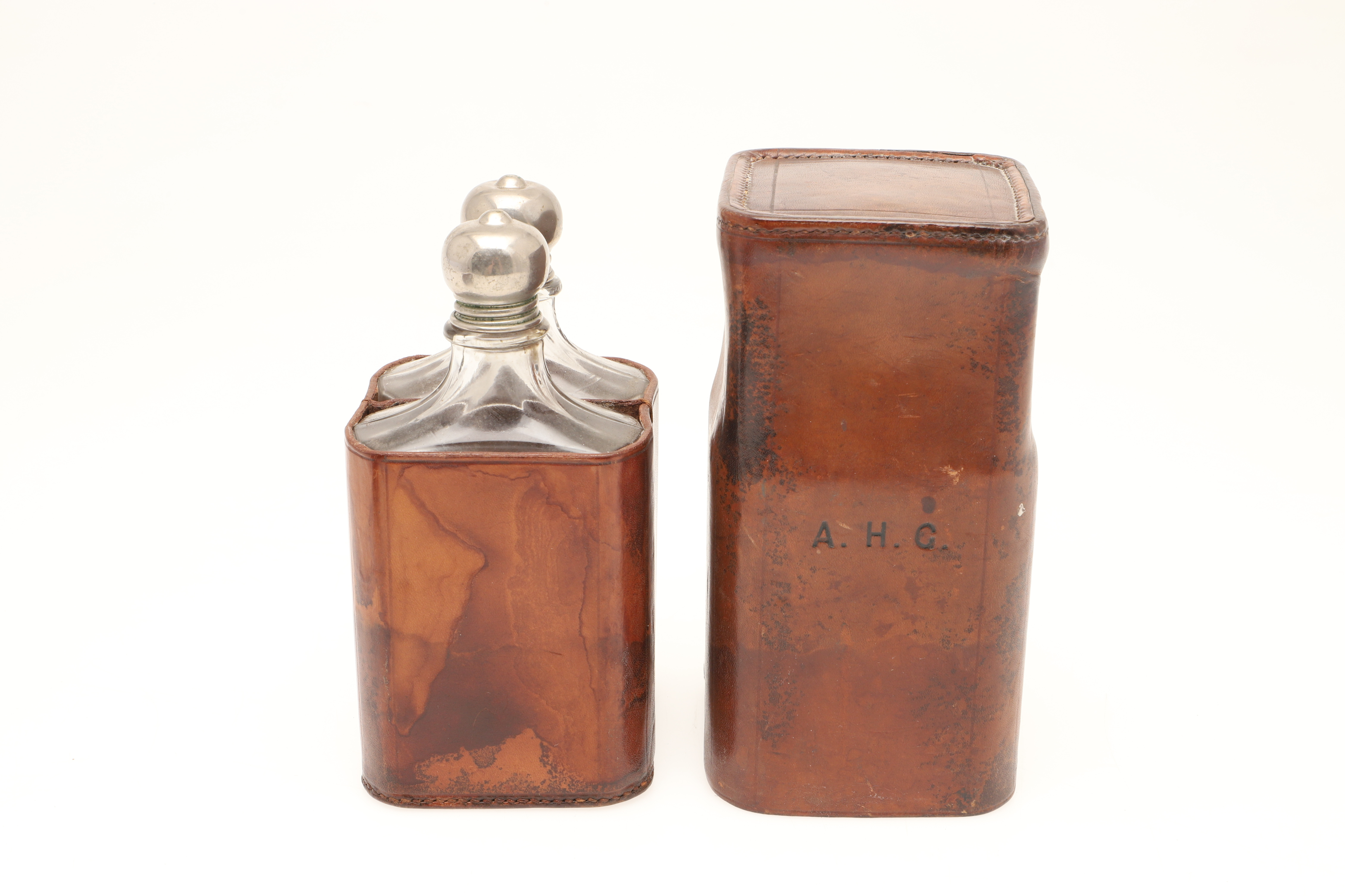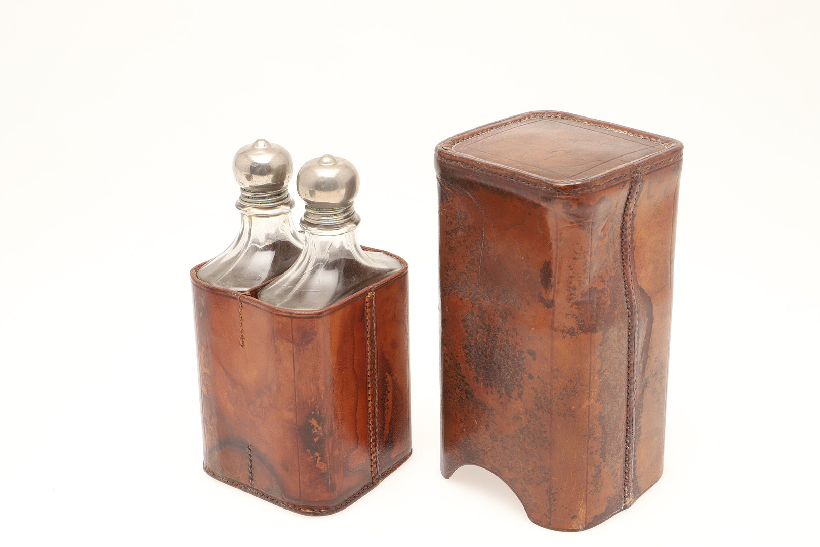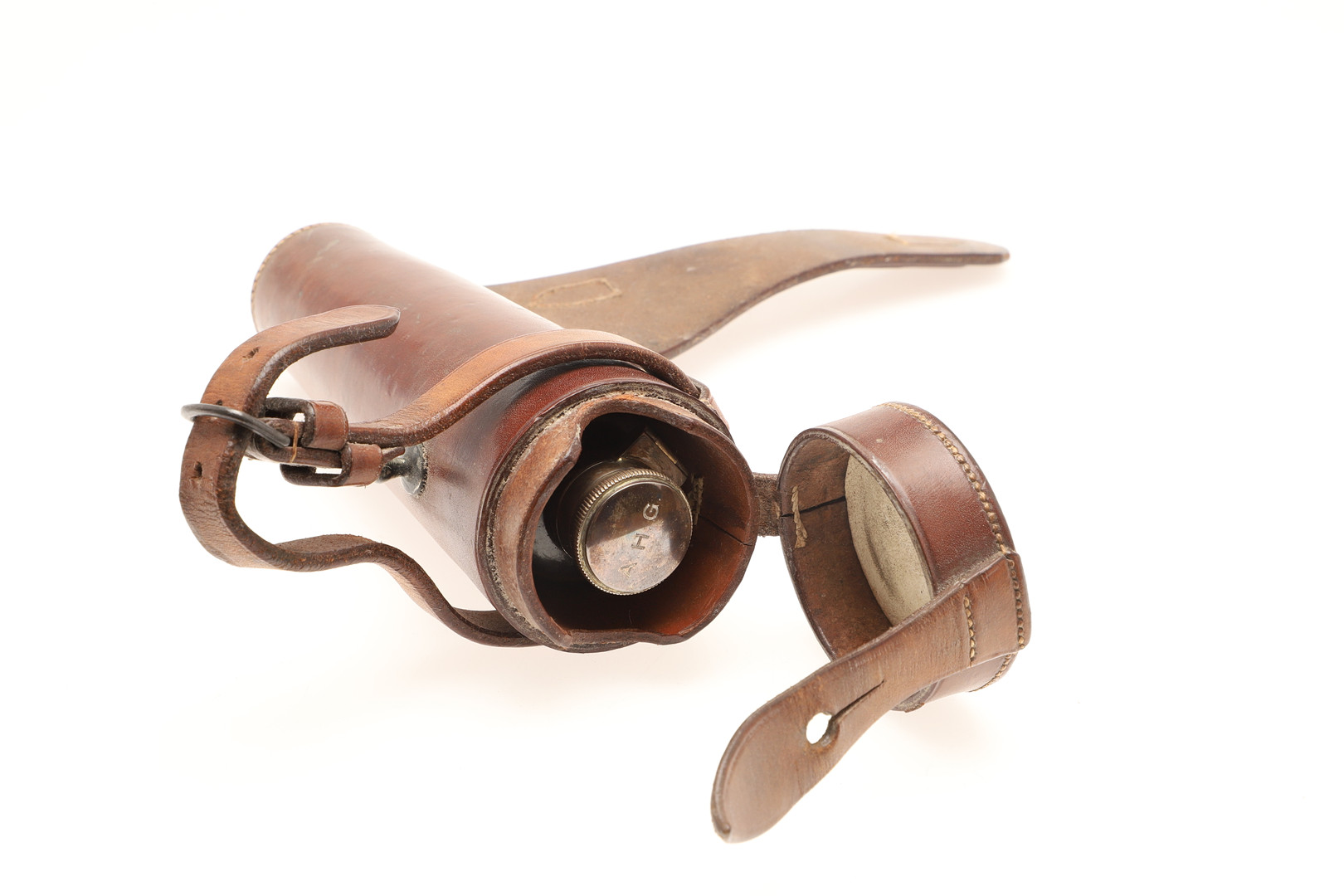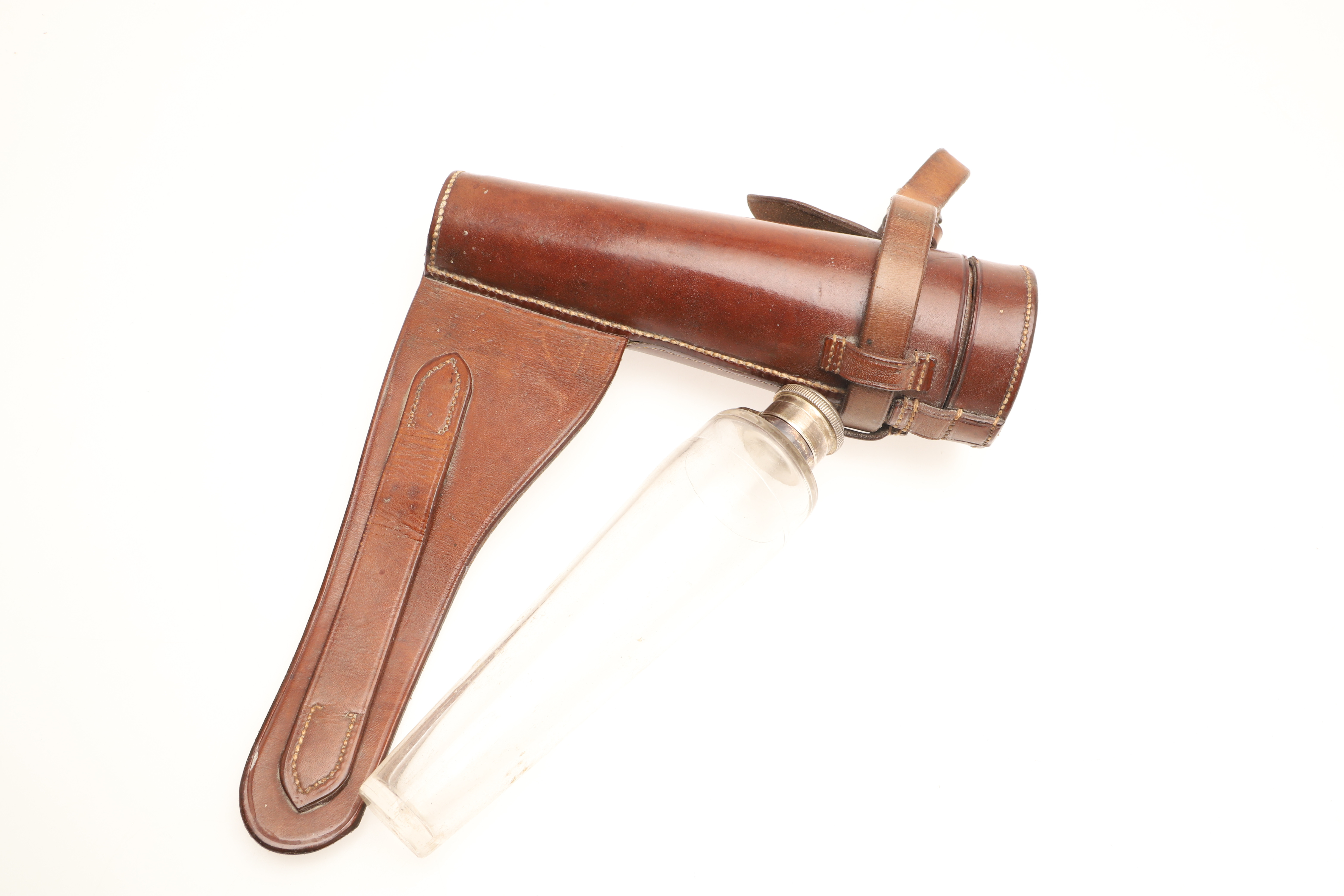 4408482. SØLVMONTERET JAGTKOLBE & ANDRE LÆDERVARER.