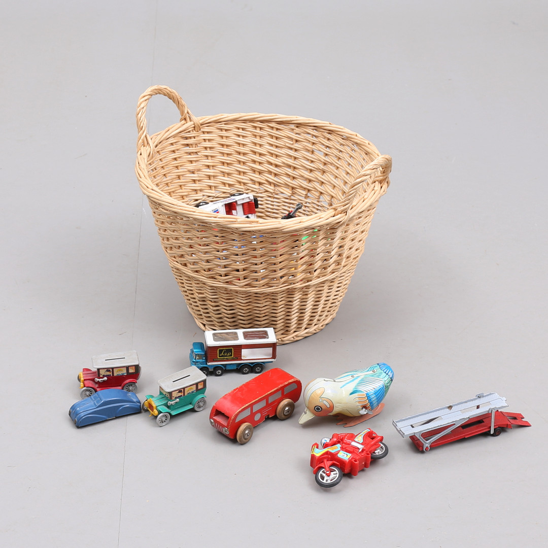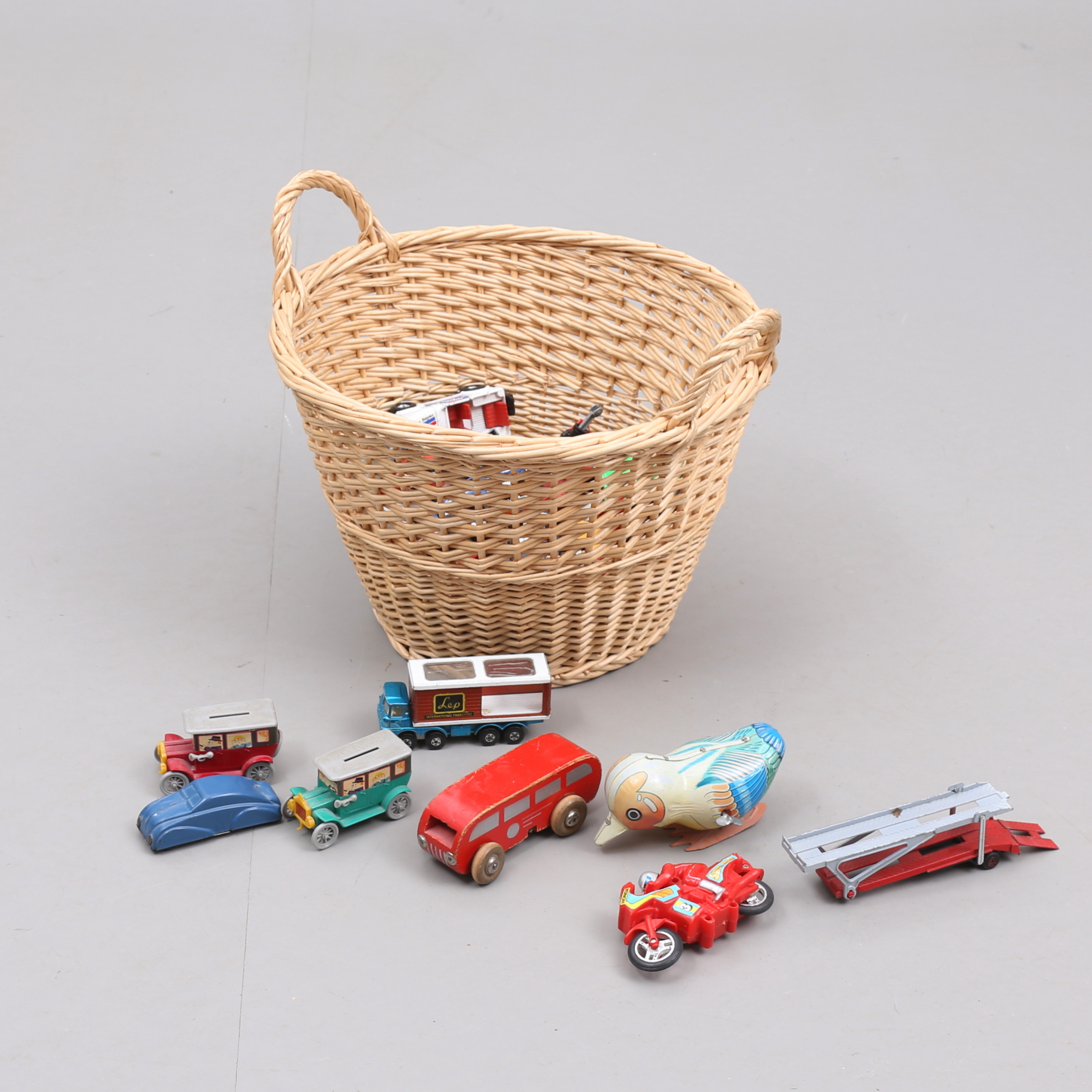 4408772. LEGETØJSBILER I KURV, ca. 40 stk.