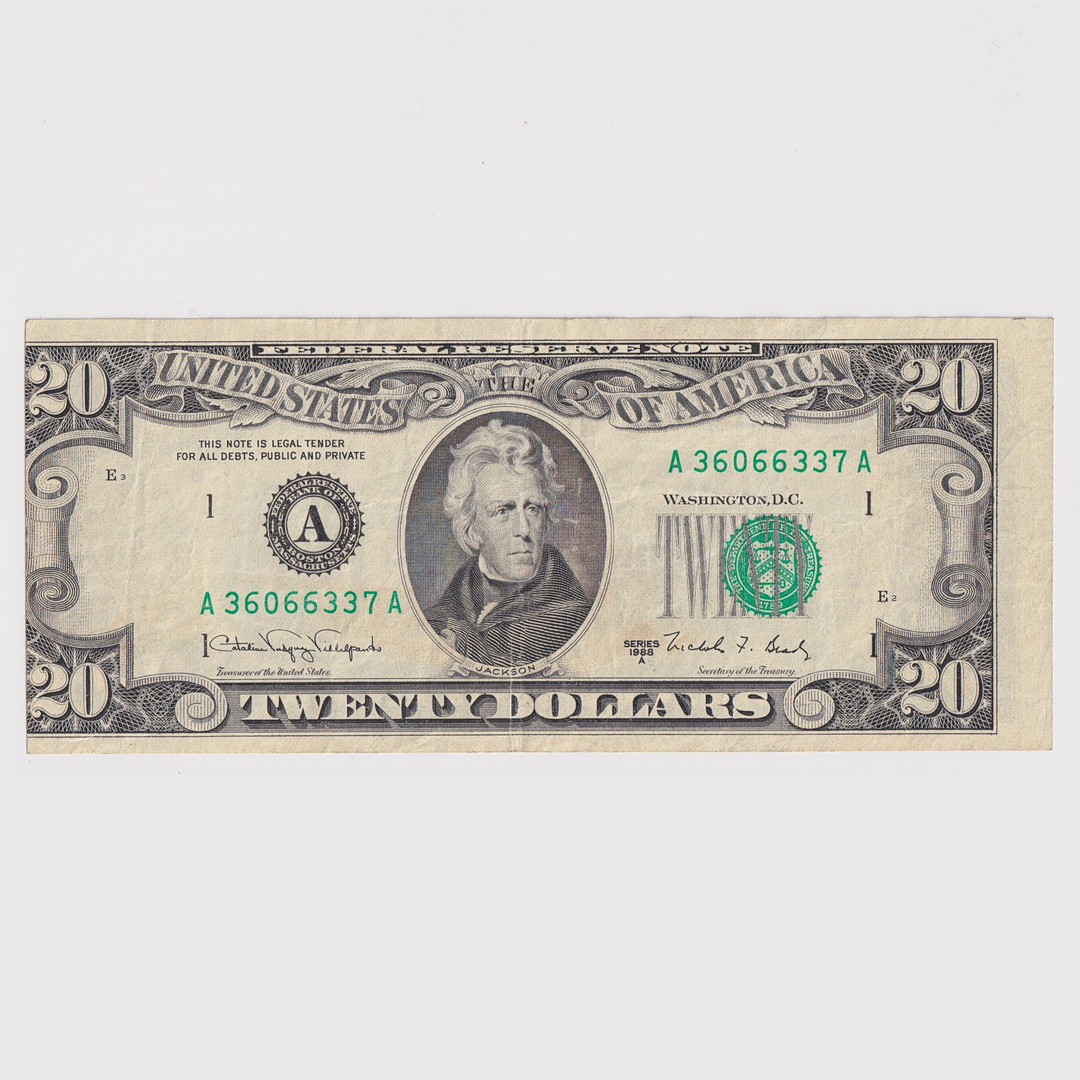 4408804. USA 20 DOLLAR FEJLNOTE, SERIE 1988 A.