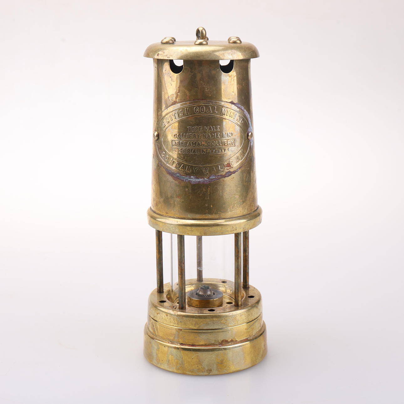 Lanterne, messing, glas, „British Coal Mining“, Wales UK.