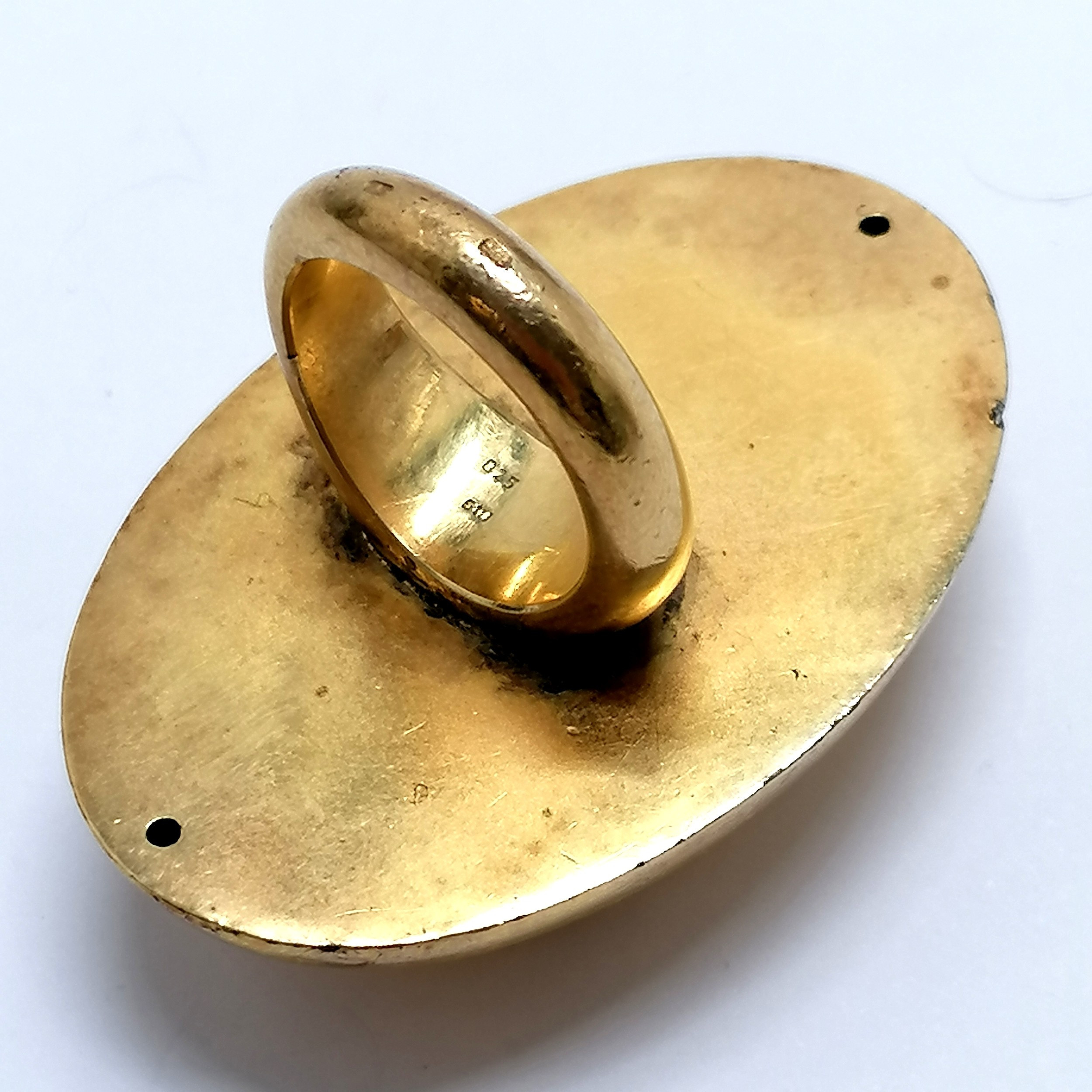 4410578. 18KT GULDBEKLÆDT STOR SØLVMÆRKET RING.