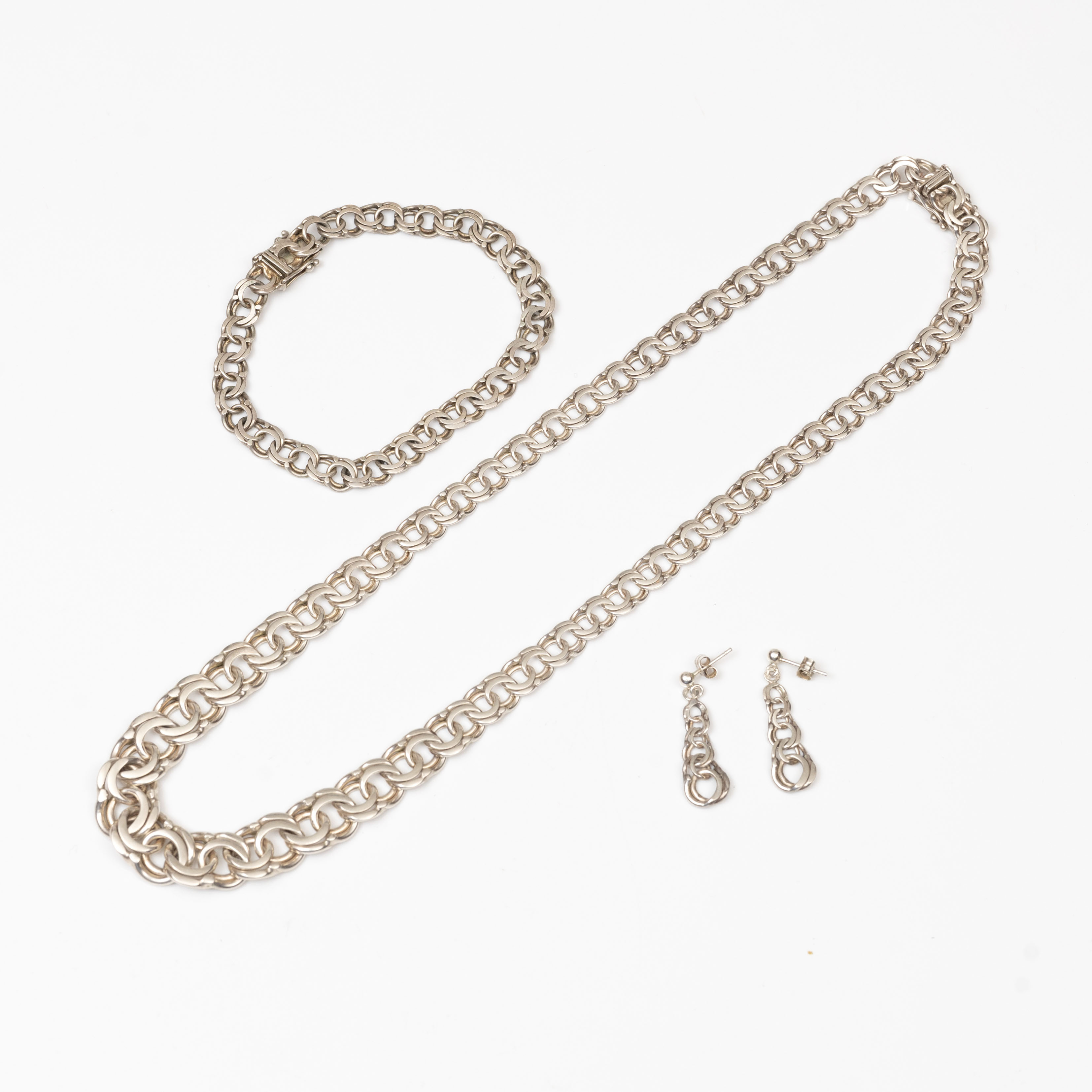 4410617. SMYKKESÆT, 3 stk., Sølv, Bismarck link.