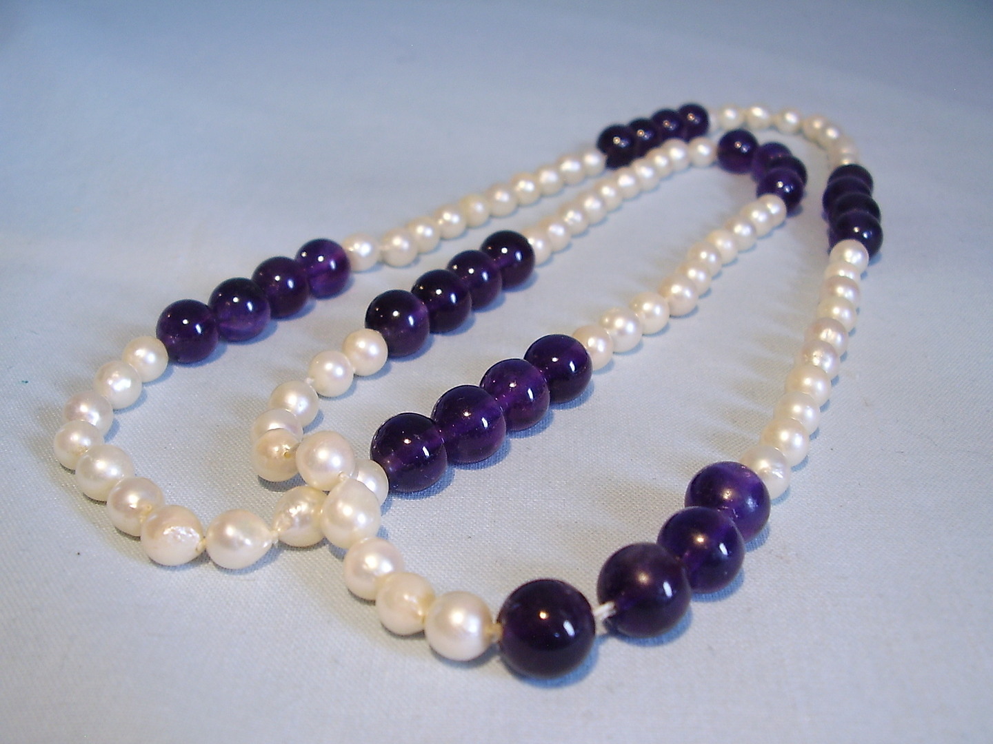 441287. AMETHYST AKOYA PERLE HALSKÆDE uendelig.