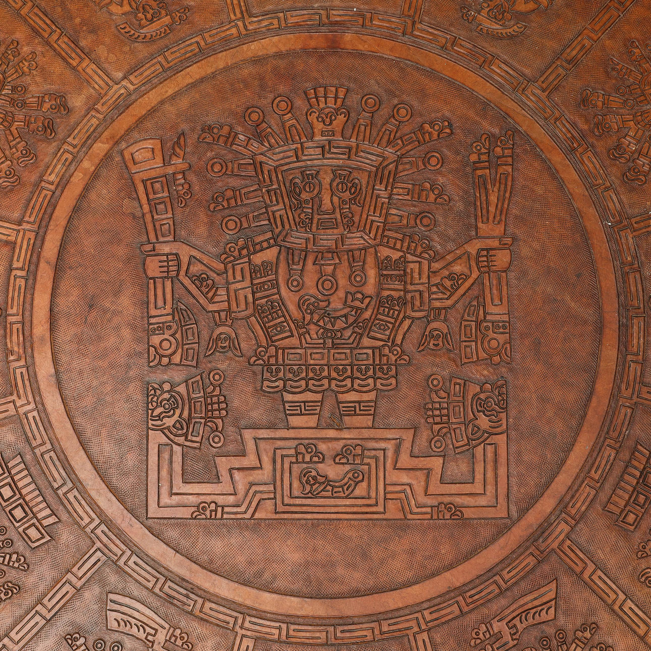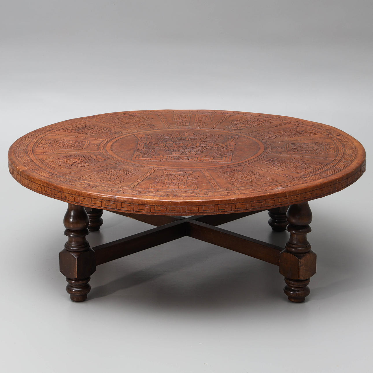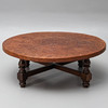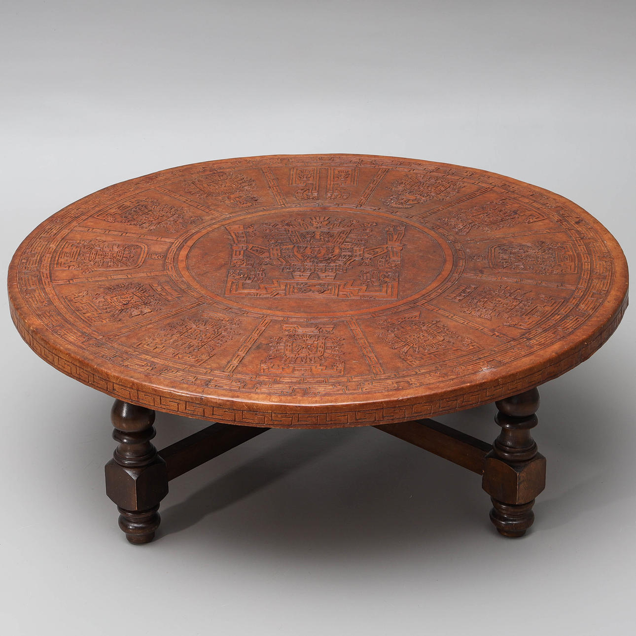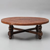 SOFABORD, træ & præget læder, sydamerikansk stil.