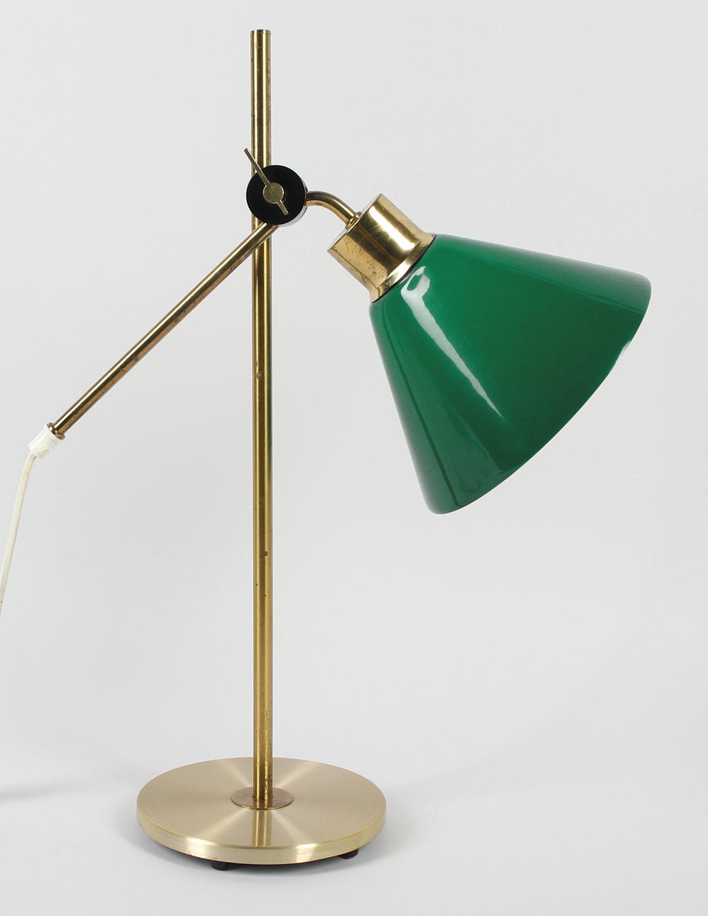 4416008. Bordlampe, messing og plast skærm.
