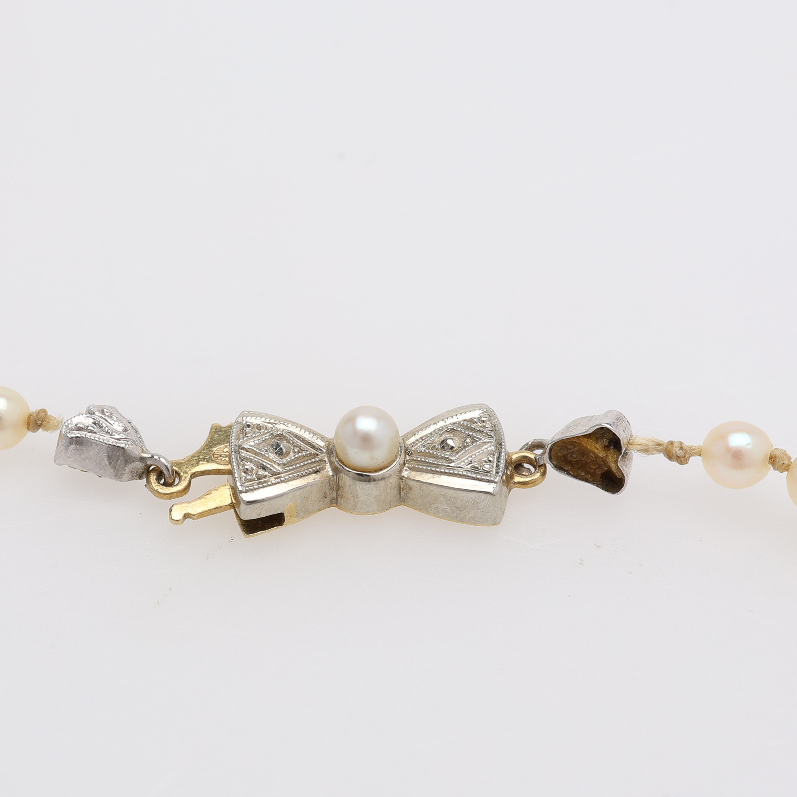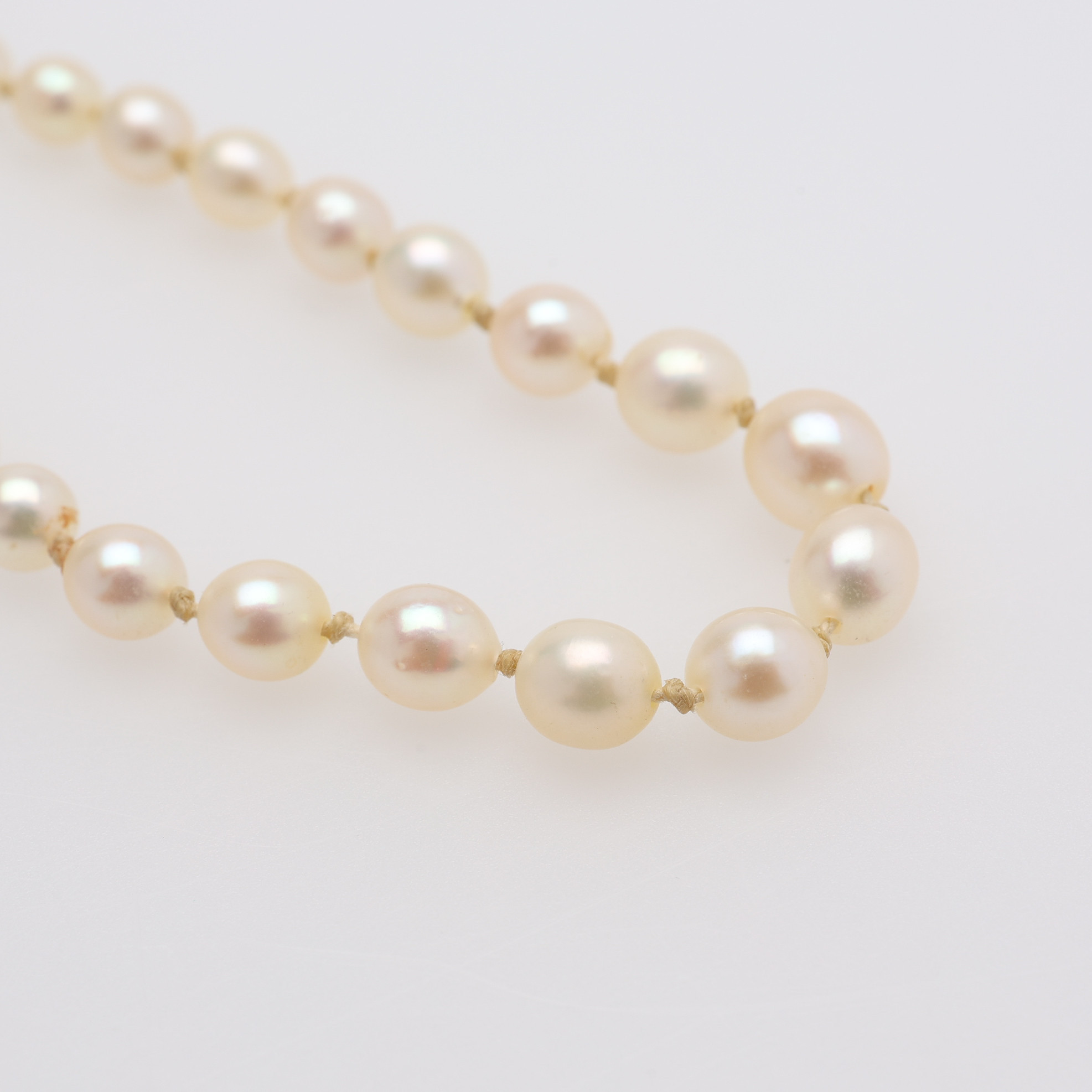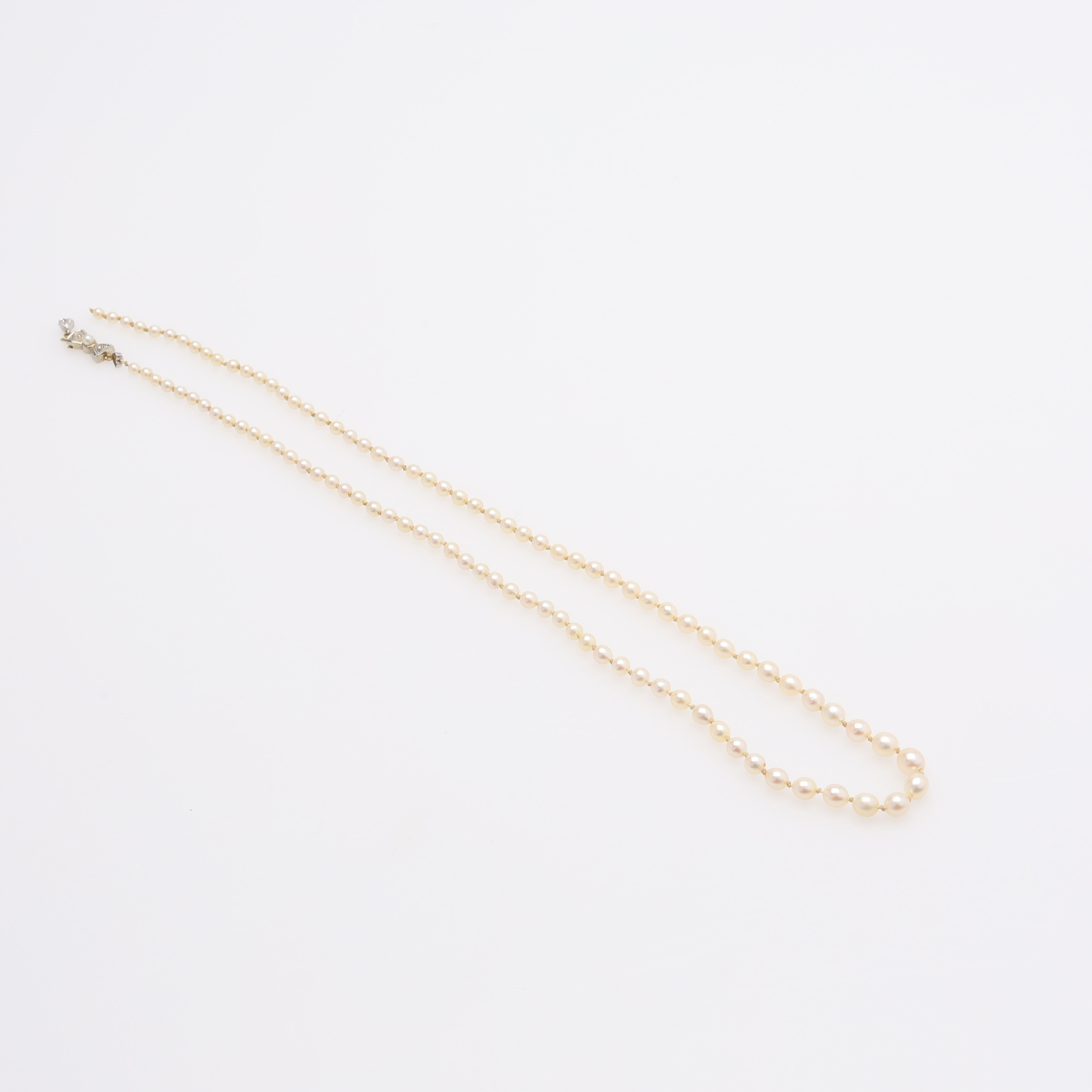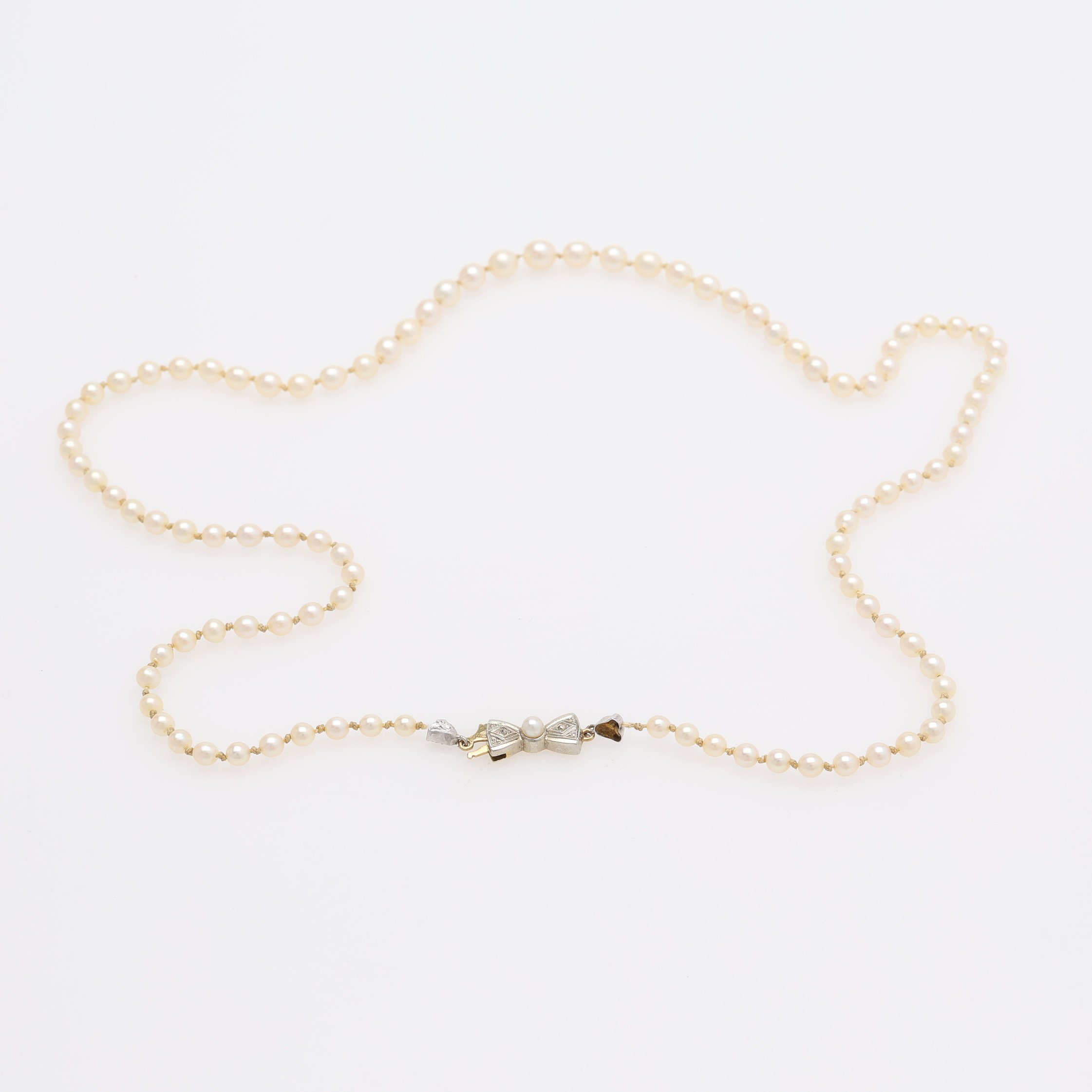 4417624. DOSERET PERLEHALSKÆDE, LÅS AF 18 KT. GULD.