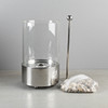 Aluminium og klart glas, i pakke, højde ca. 38, diameter 23 cm.