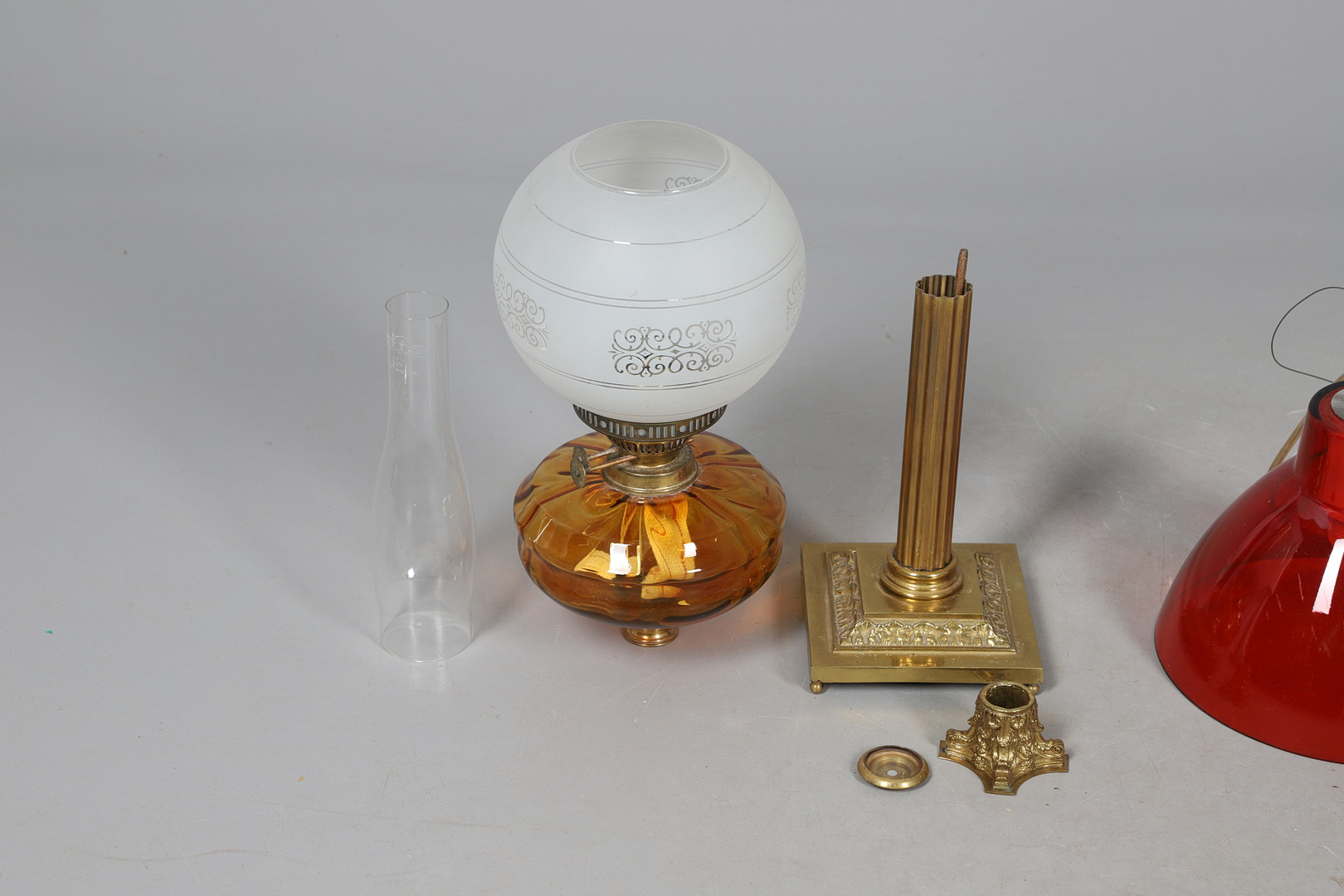 4418902. MESSING OLIELAMPE & GLAS LOFTLAMPE.