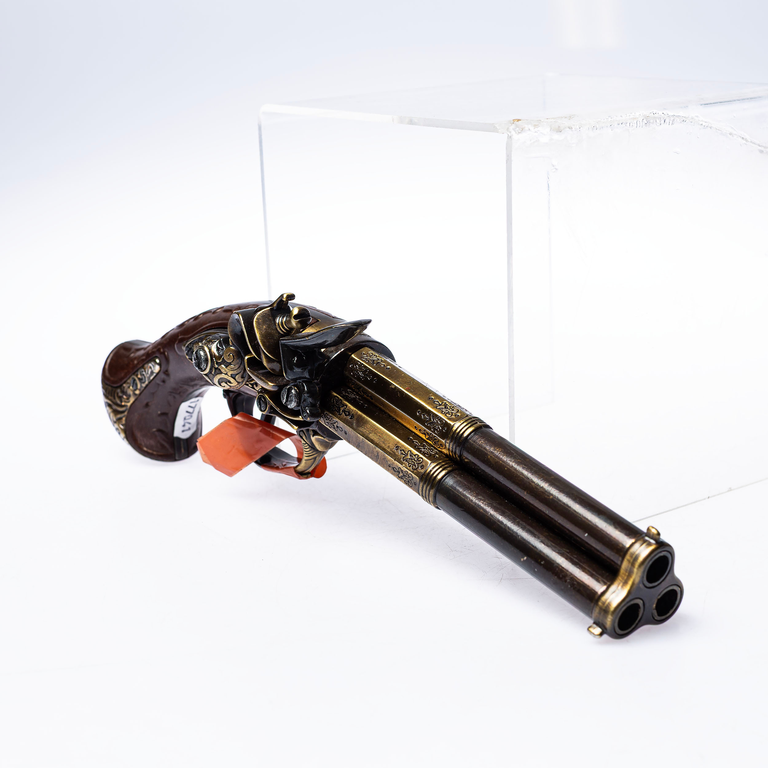 4419372. FLINTLOCK PISTOL, 3-tøndet, replika.