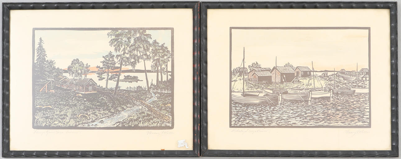 4419880. HENRY OLSSON. 2 stykker træsnit, signeret.