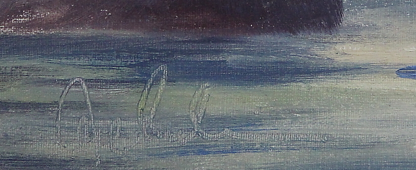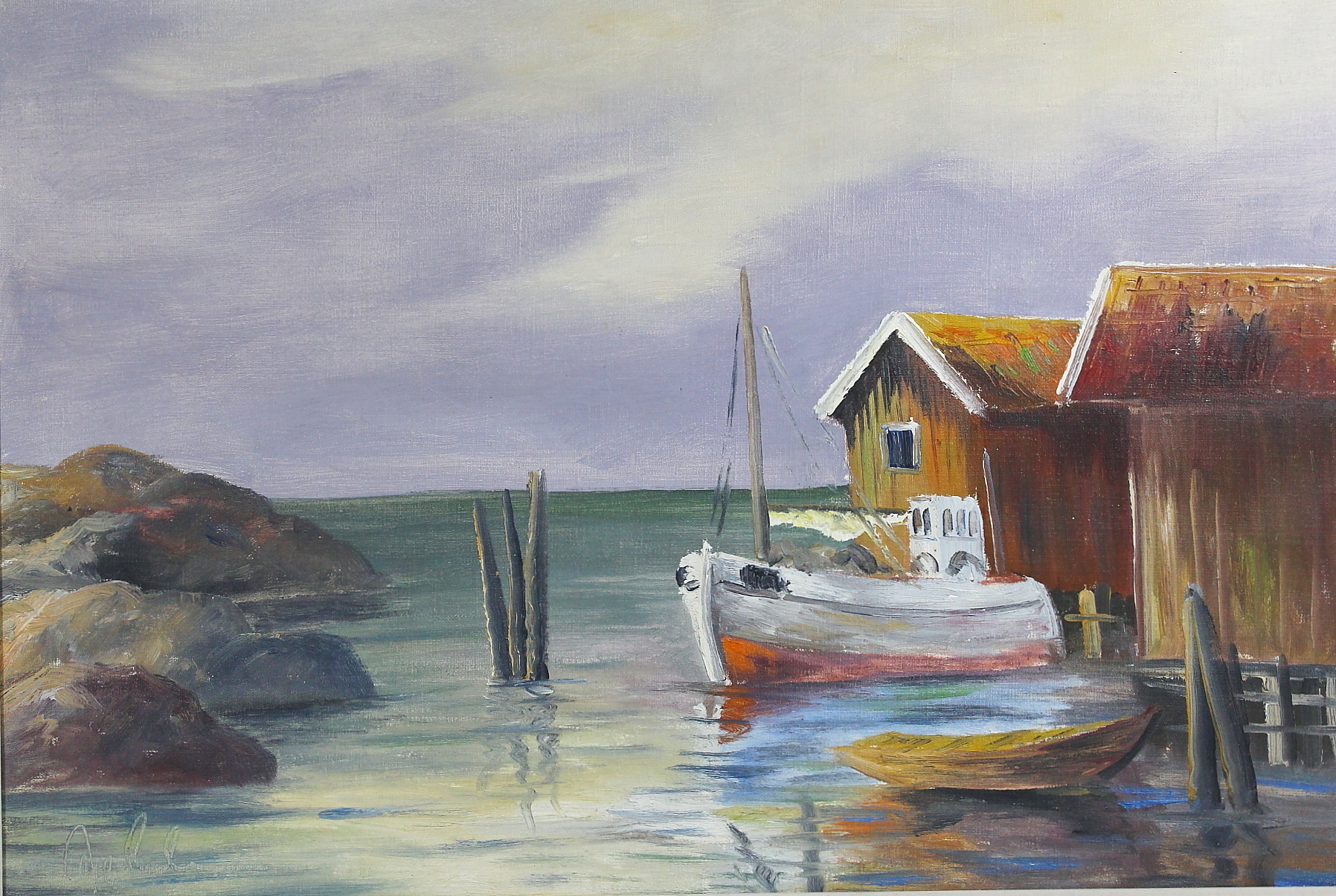 442000. OIDENTIFIERAD KONSTNÄR. olielærred, Bohusmotiv, sign.
