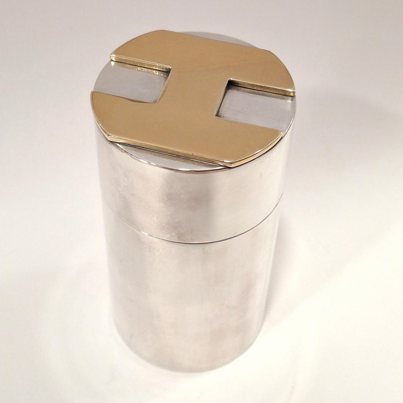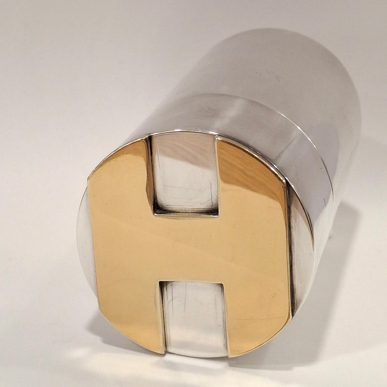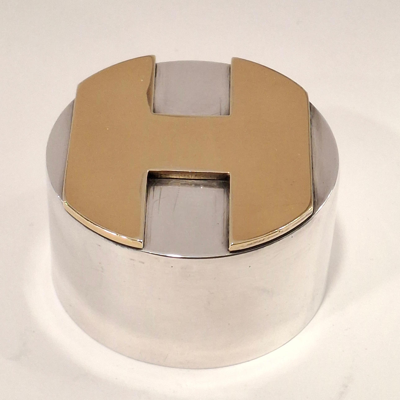4420526. HERMES. „H“ desktop lighter i sølv og guld alpaca.