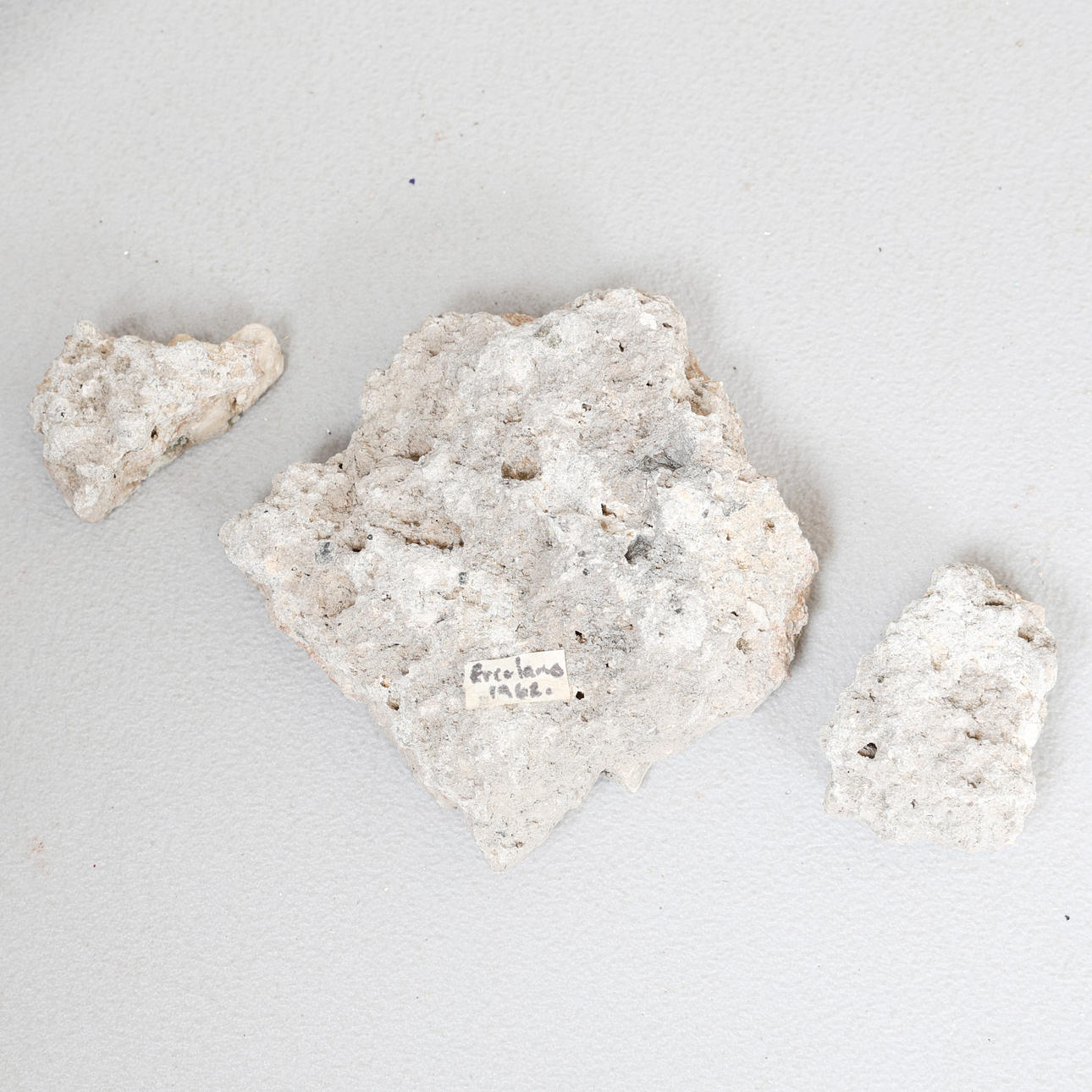 Bestående af et stort og to mindre stykker med rektangulære tesserae, det større stykke 6,5 cm bredt, 7 cm dybt, anbragt i en kasse mærket „ERCOLANO 10.8.62".