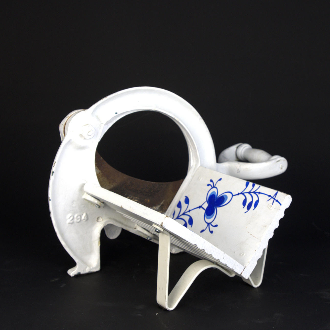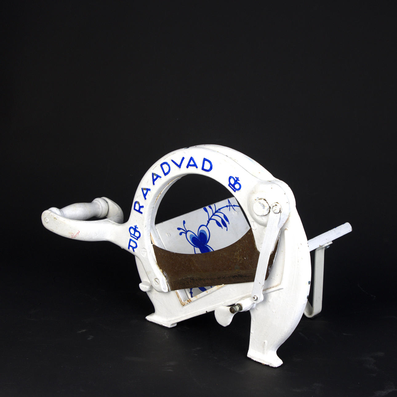 Brødskærer, jern, træ, håndmalet dekor, Danmark, 20. århundrede.