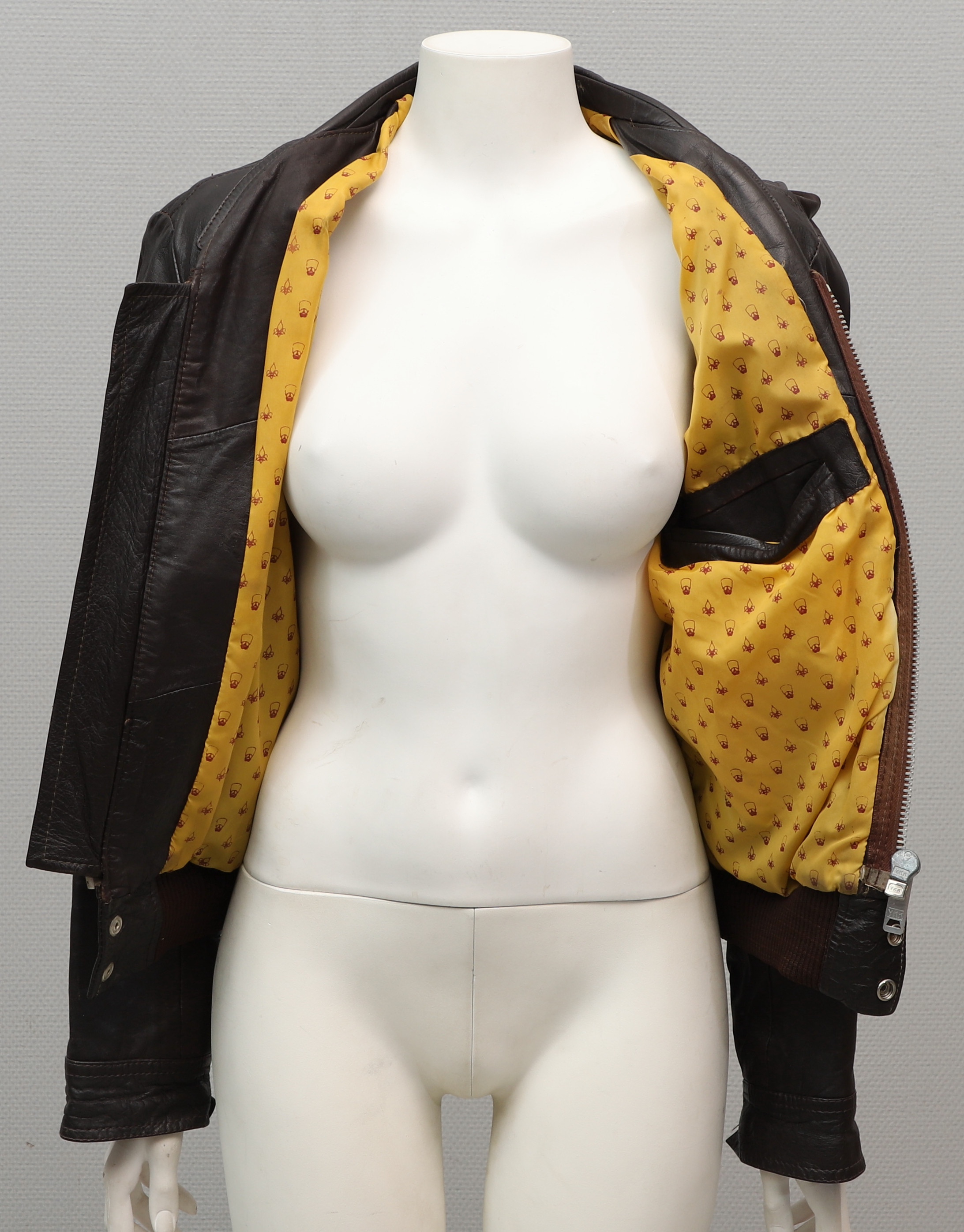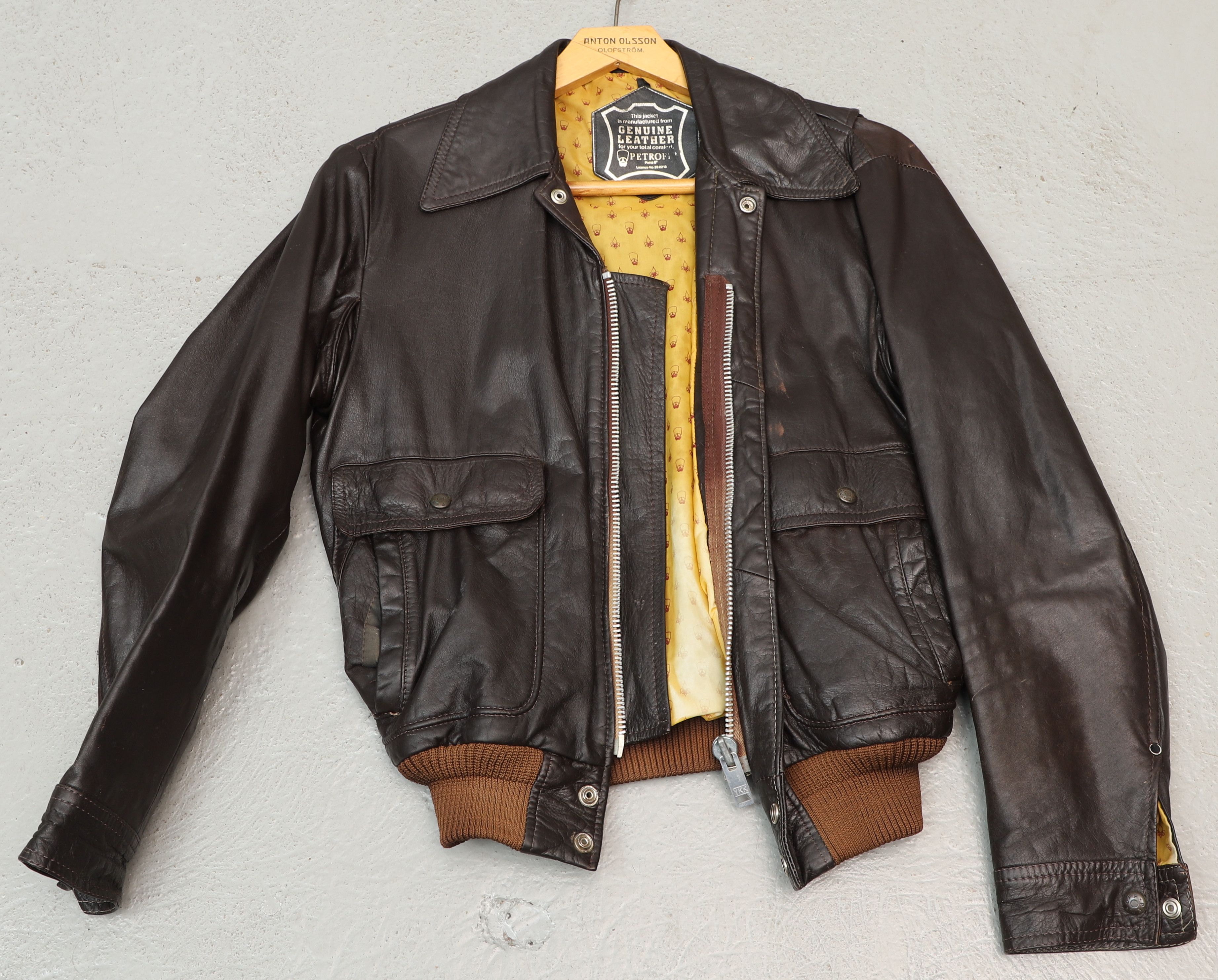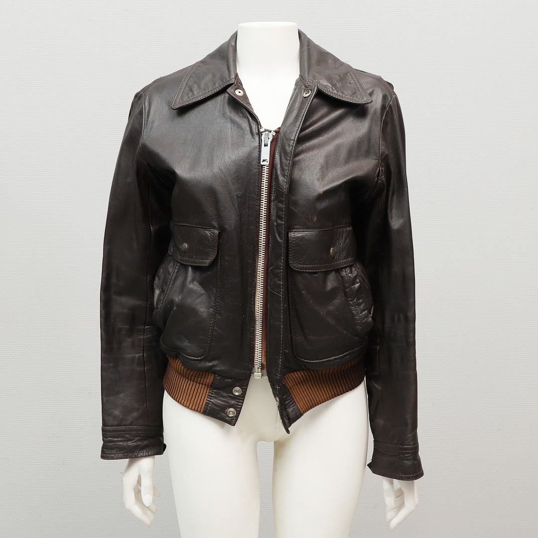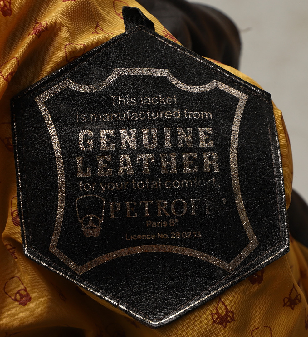 4431737. LÆDERJAKKE. mørkebrun, Petroff, 20. årh.