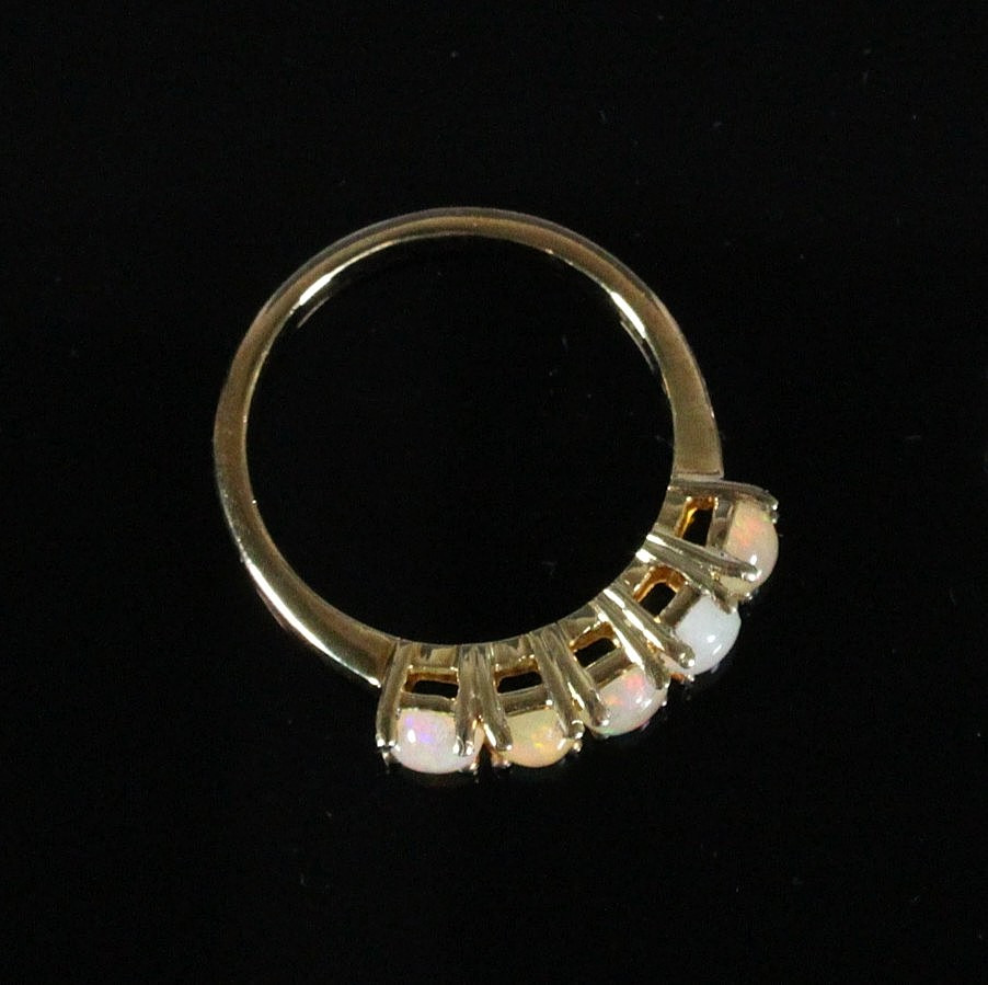 4432852. Rivière ring med opaler, 925 sølv, forgyldt.