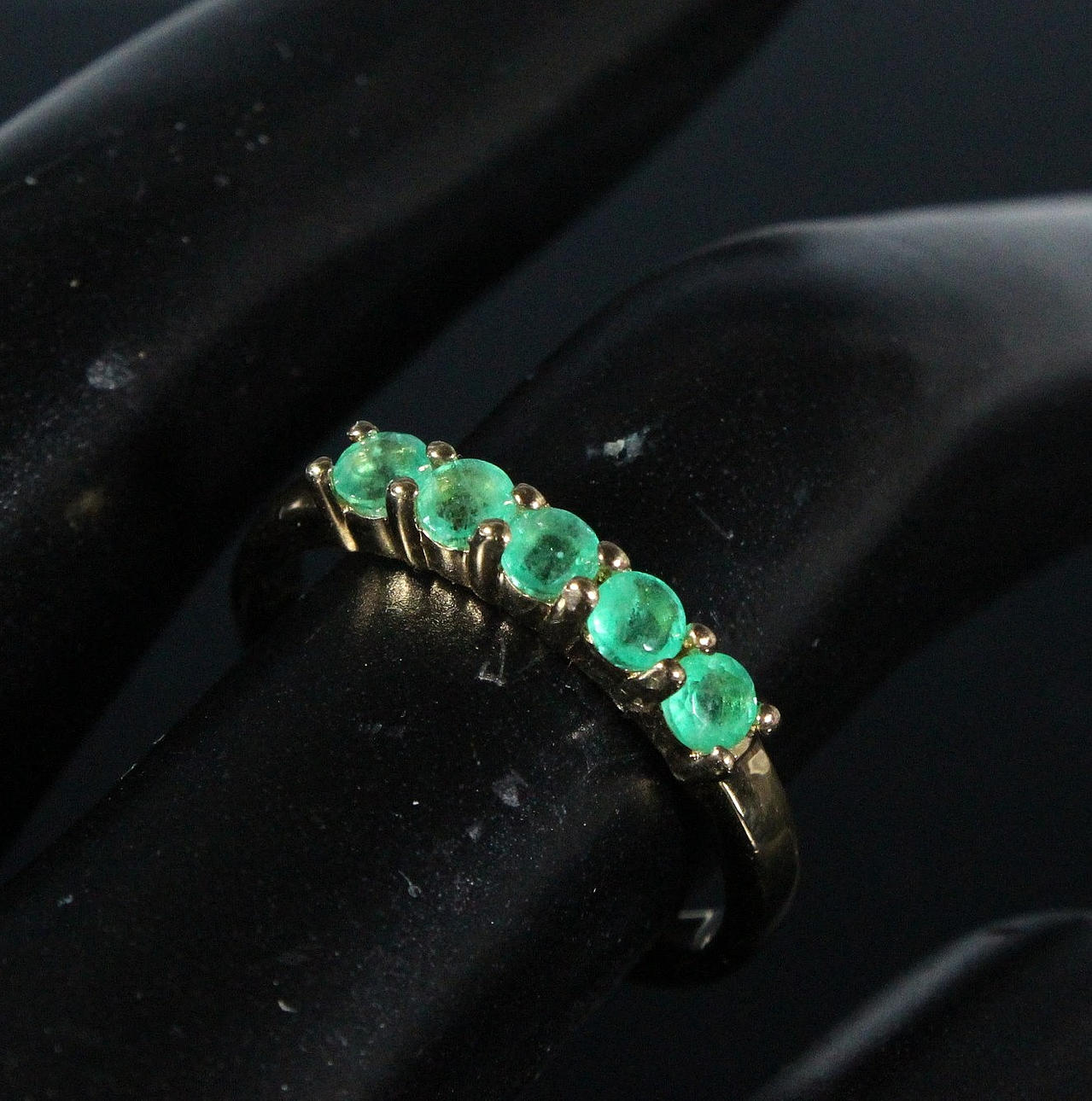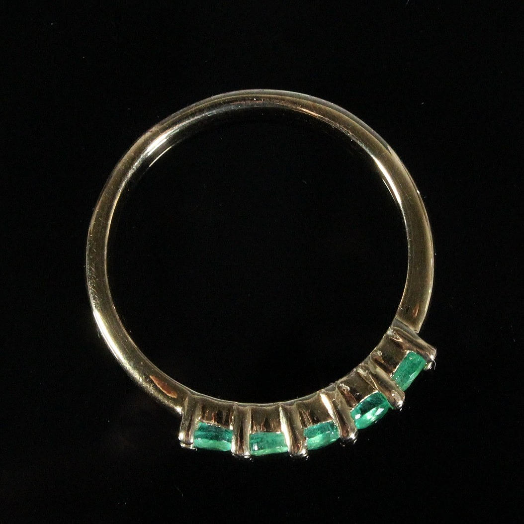 Rivière ring med smaragder, 925 sølv, forgyldt.