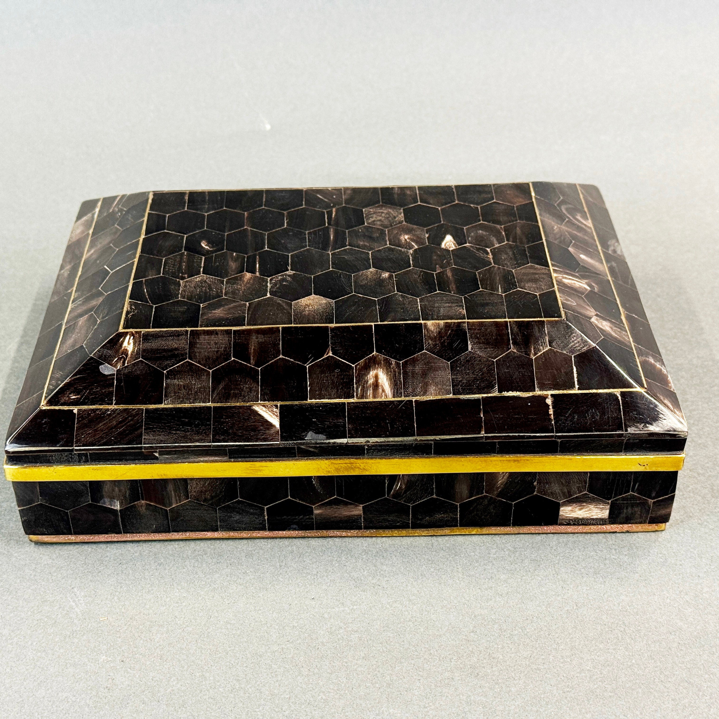 4434052. MOSAIK DEKORERET FORGYLDT MESSING CIGARKASSE.
