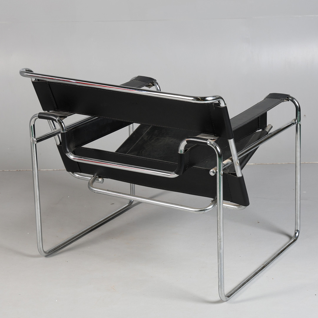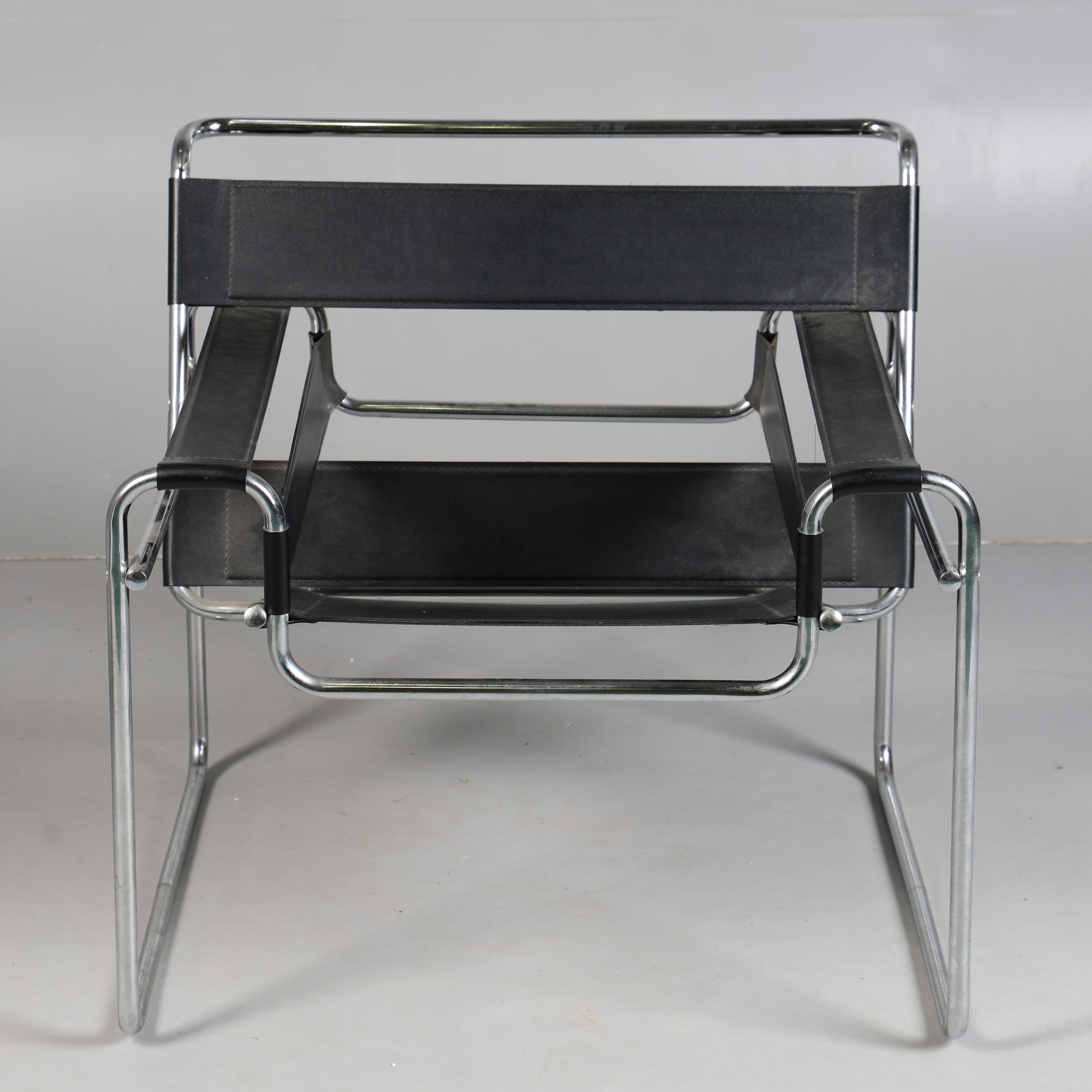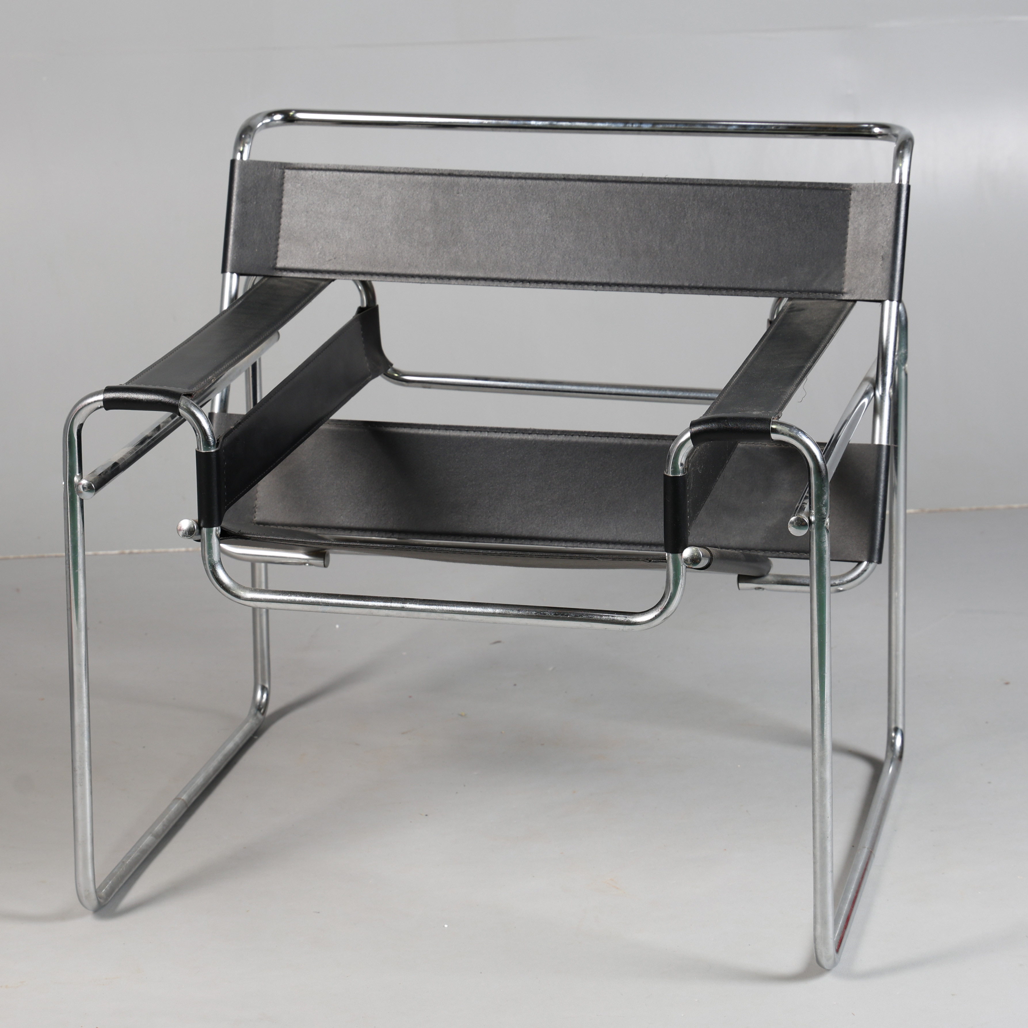 4434838. LÆDER OG KROM INDRAMMET LÆNESTOL.
