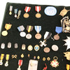 Ca. 40 stykker, metal, sølv, Sveriges Hemvärn, FN, Centralforening for Kommandoundervisning, Dimensionstavle, ca. 50 x 65 cm.
