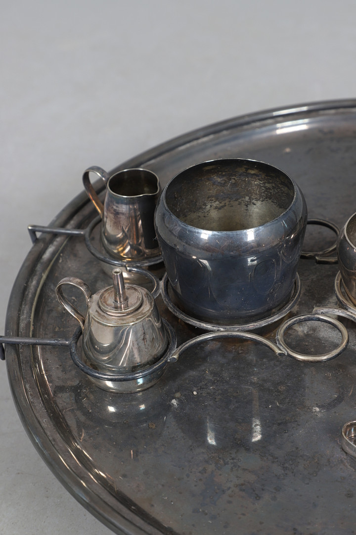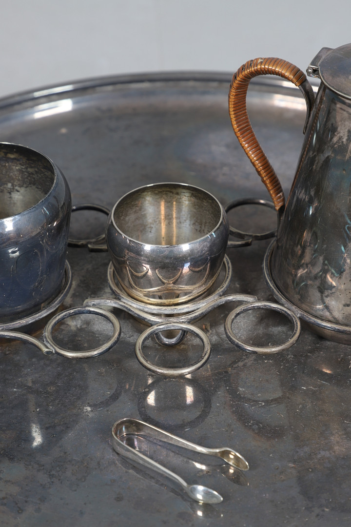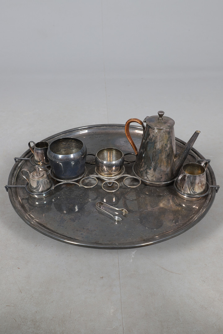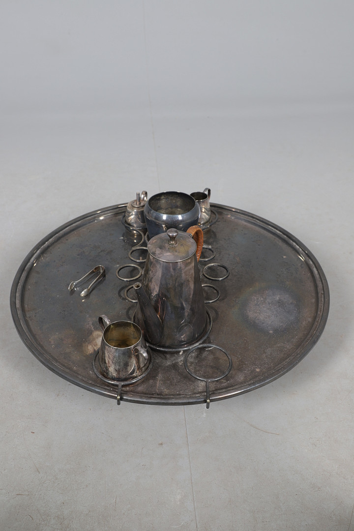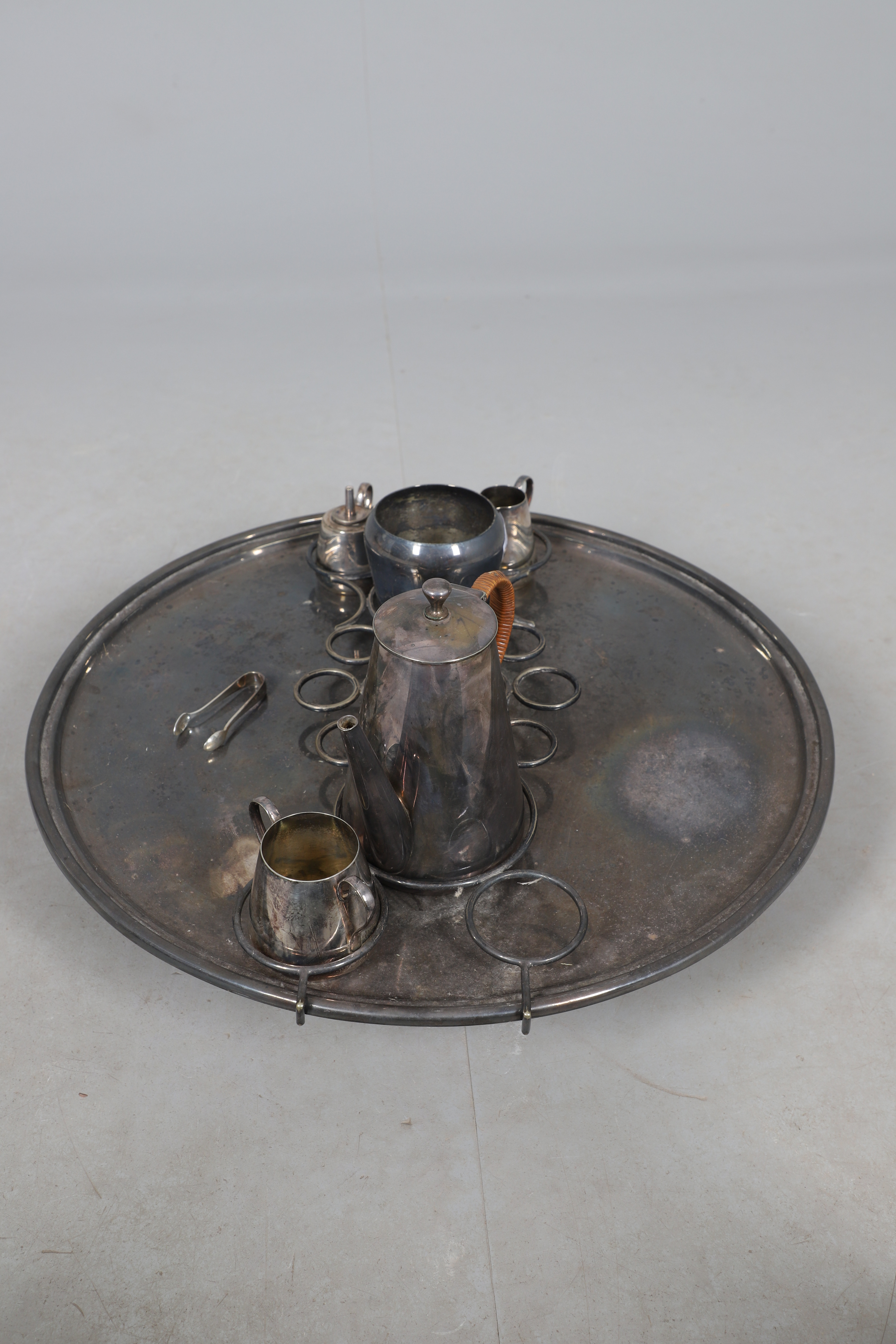 4436910. EN SØLVBELAGT LAZY SUSAN KAFFESERVICE.