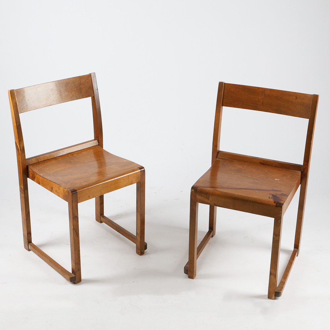 4438011. SVEN MARKELIUS. To stole, „Orkesterstol“, bejdset birk.