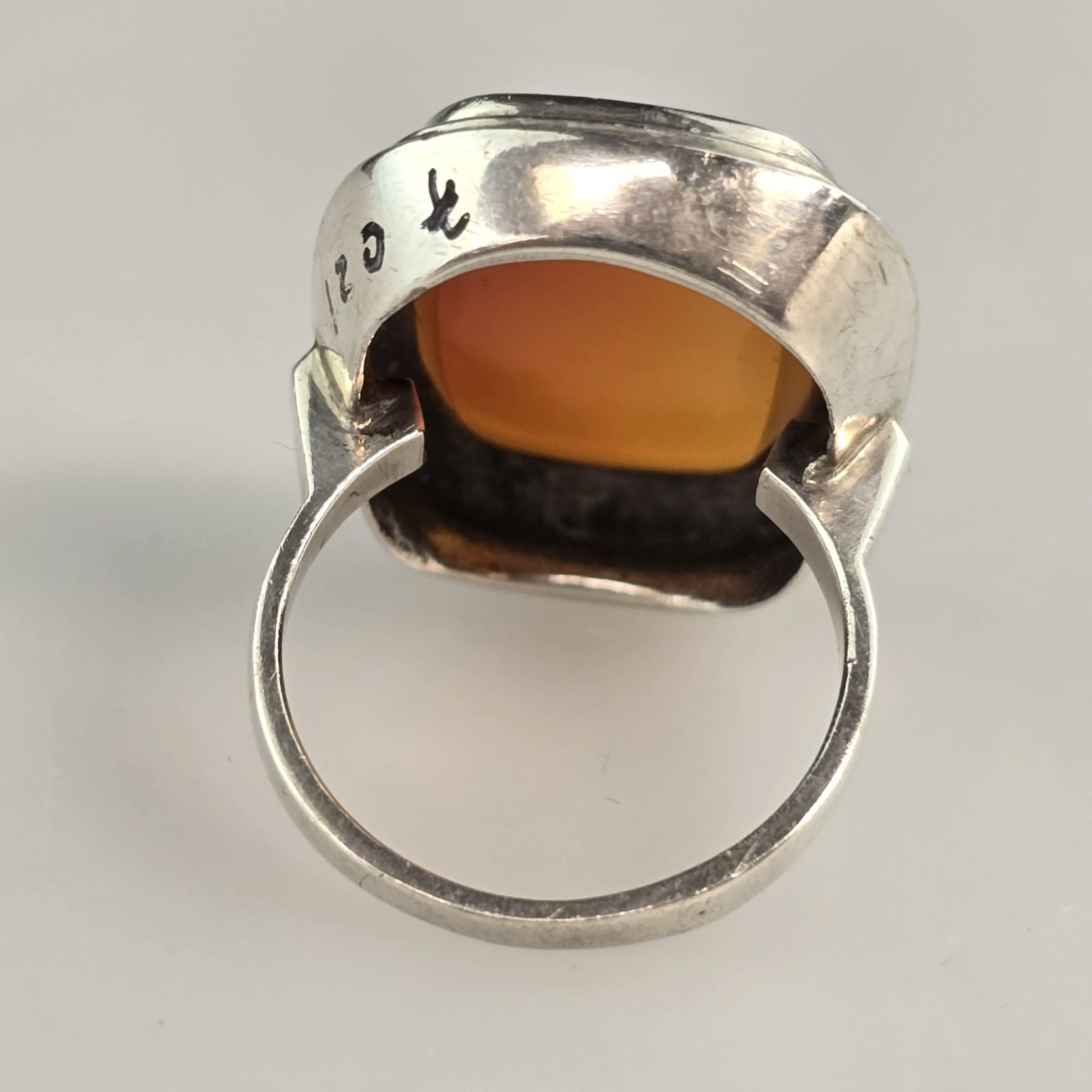 4438950. - KARNELISK RING - 830/000 sølv, ringstørrelse ca. 17.8 mm.