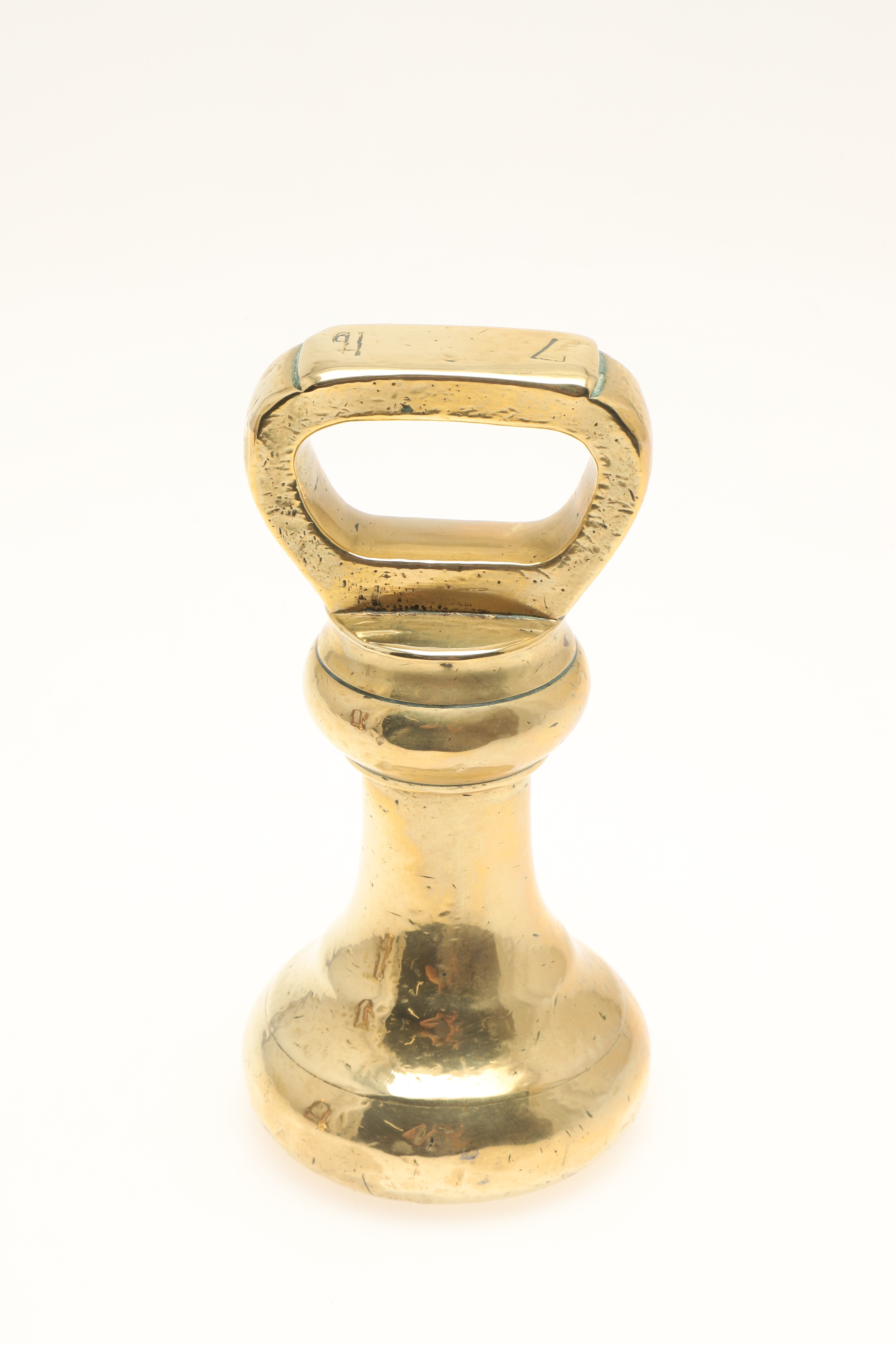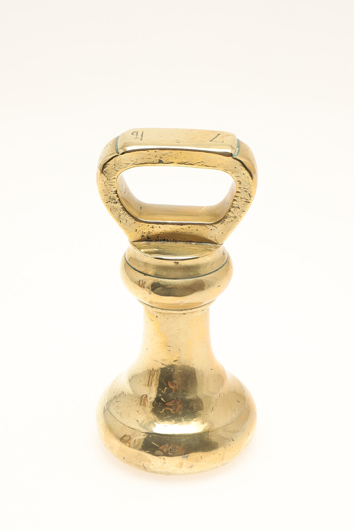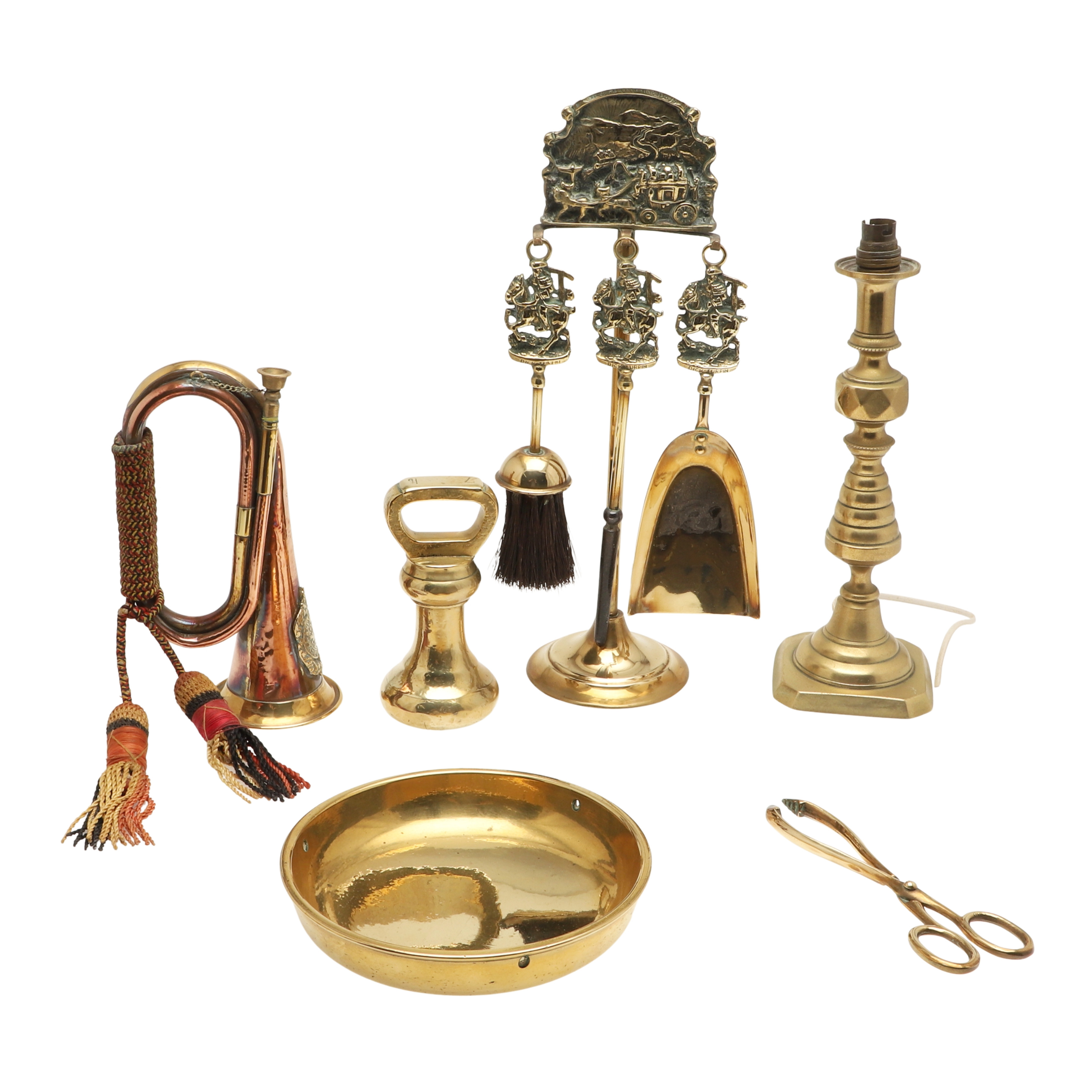 4439833. STOR MESSINGVÆGT OG ANDRE MESSINGGENSTANDE.