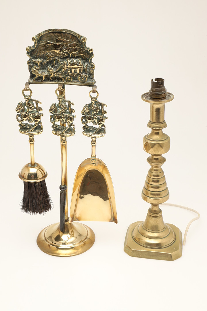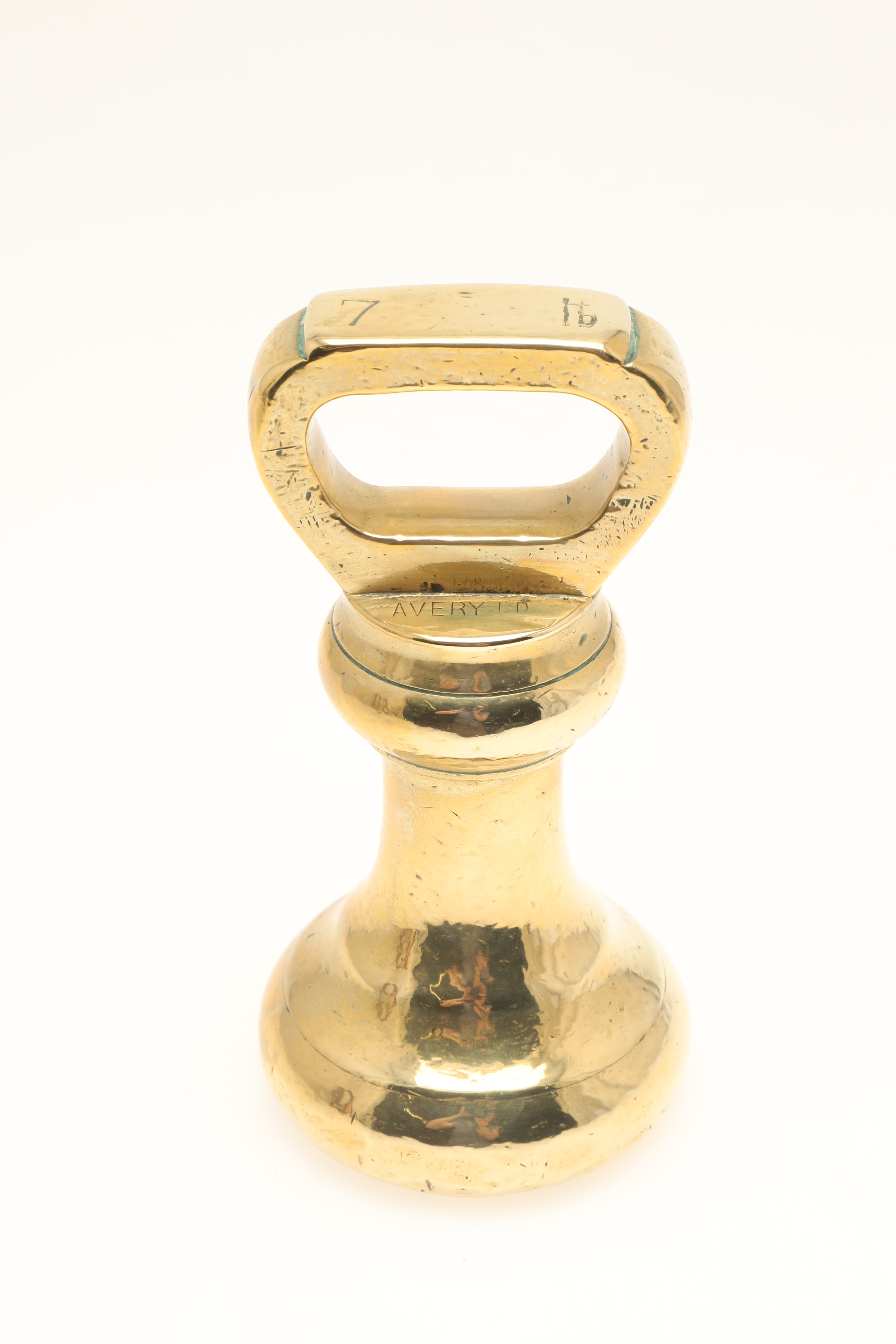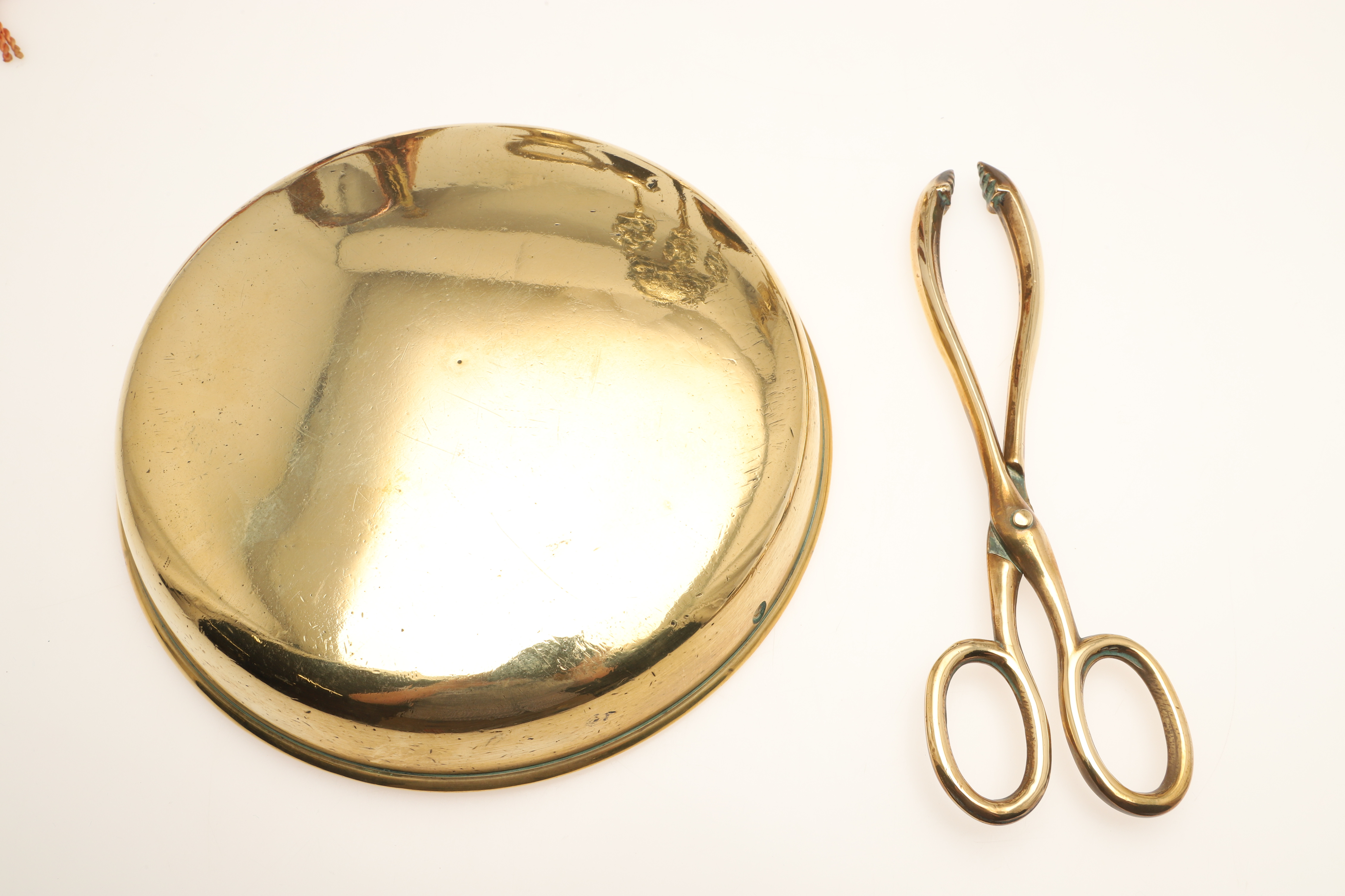 4439833. STOR MESSINGVÆGT OG ANDRE MESSINGGENSTANDE.