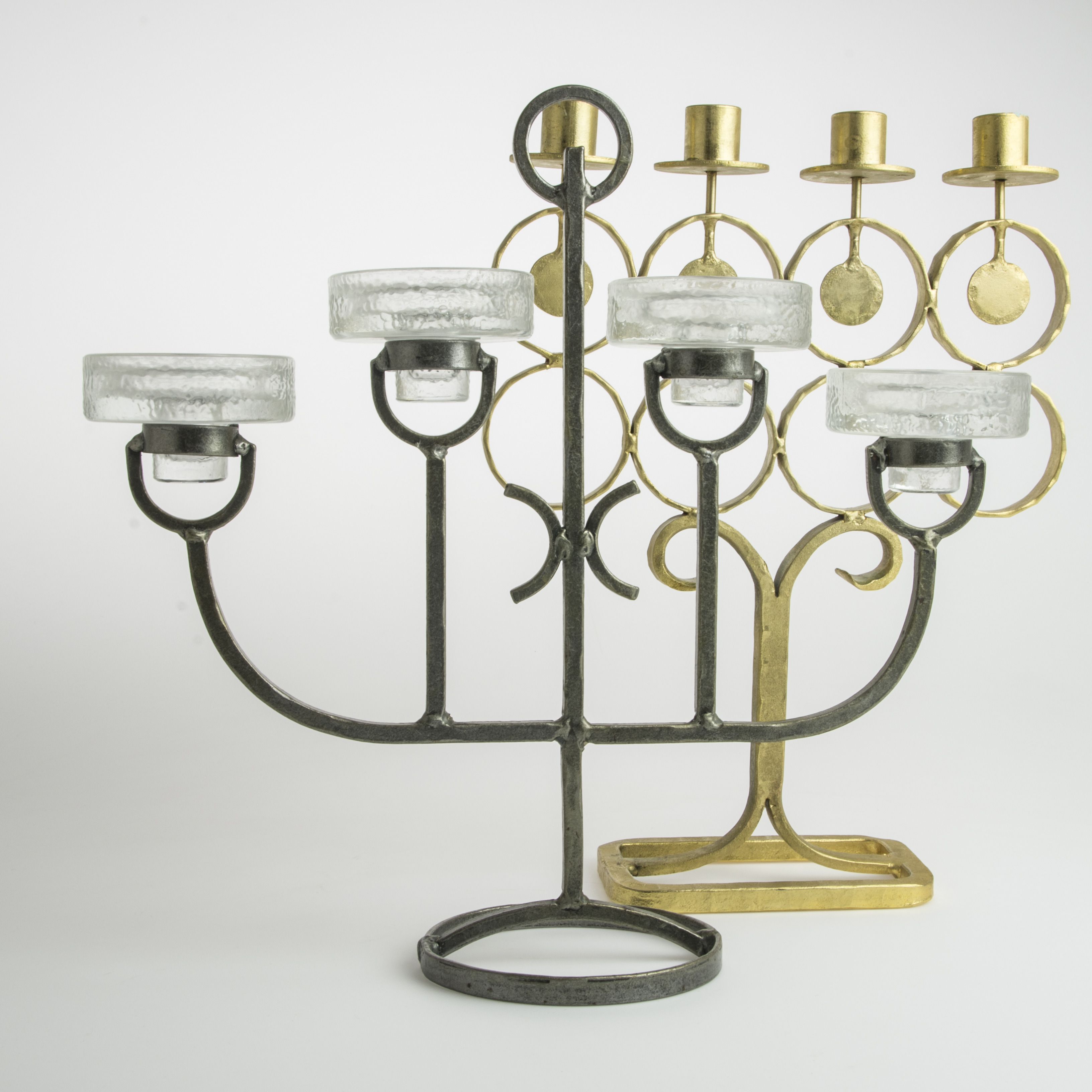 443994. KANDELABRER, 2 stk., smedejern/glas.