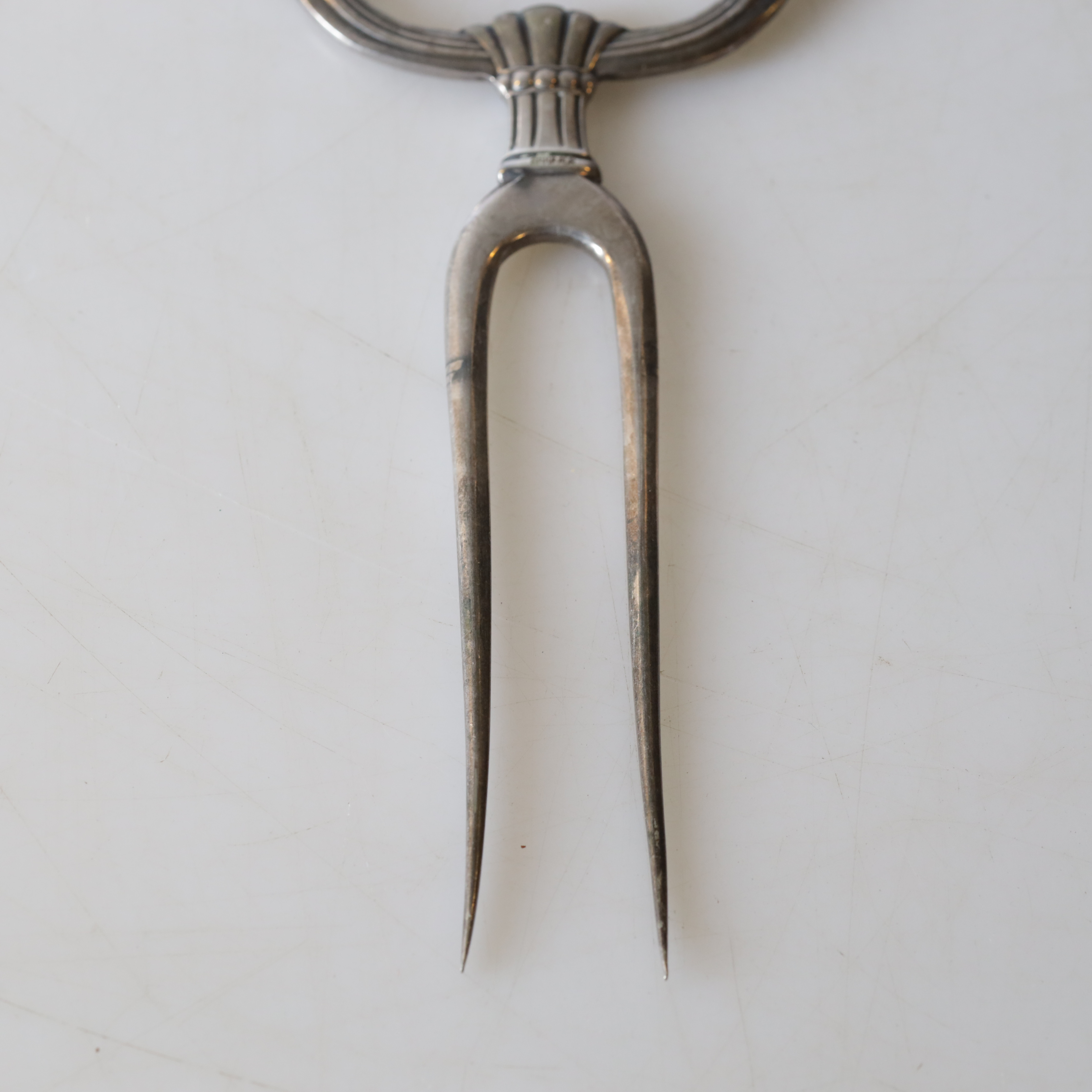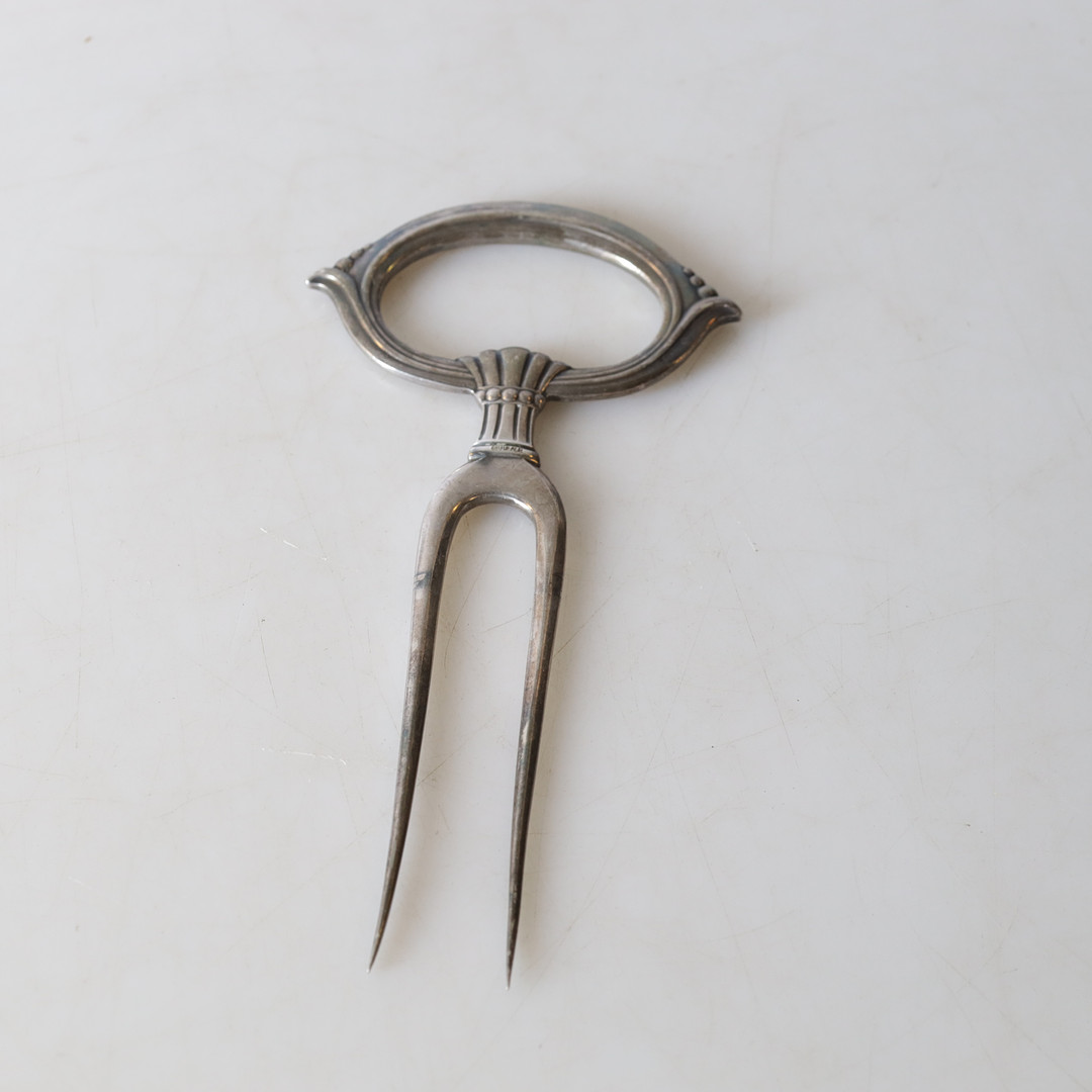 4445602. SKINKEGAFFEL, nysølv, 20. årh.