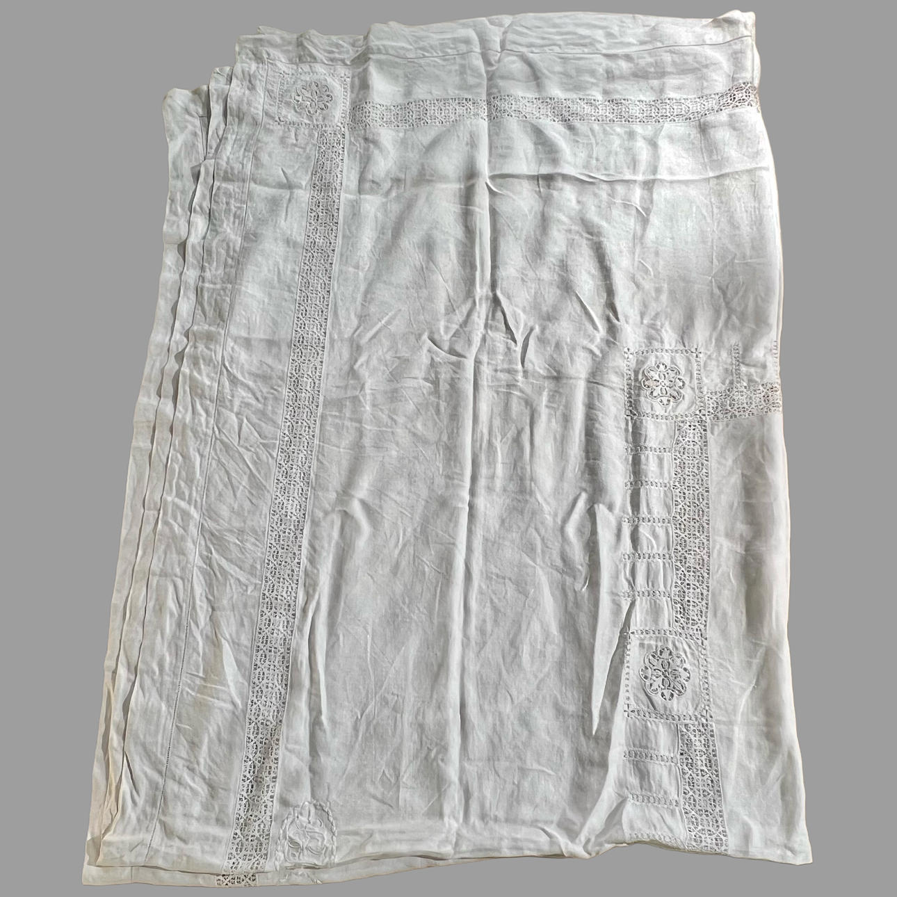 4445755. Håndbroderet bomuldsdug med 12 matchende servietter.