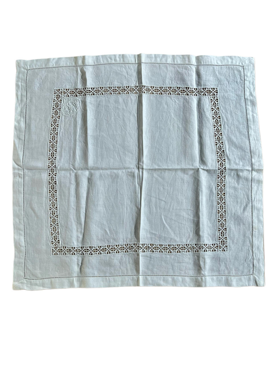 Håndbroderet bomuldsdug med 12 matchende servietter.