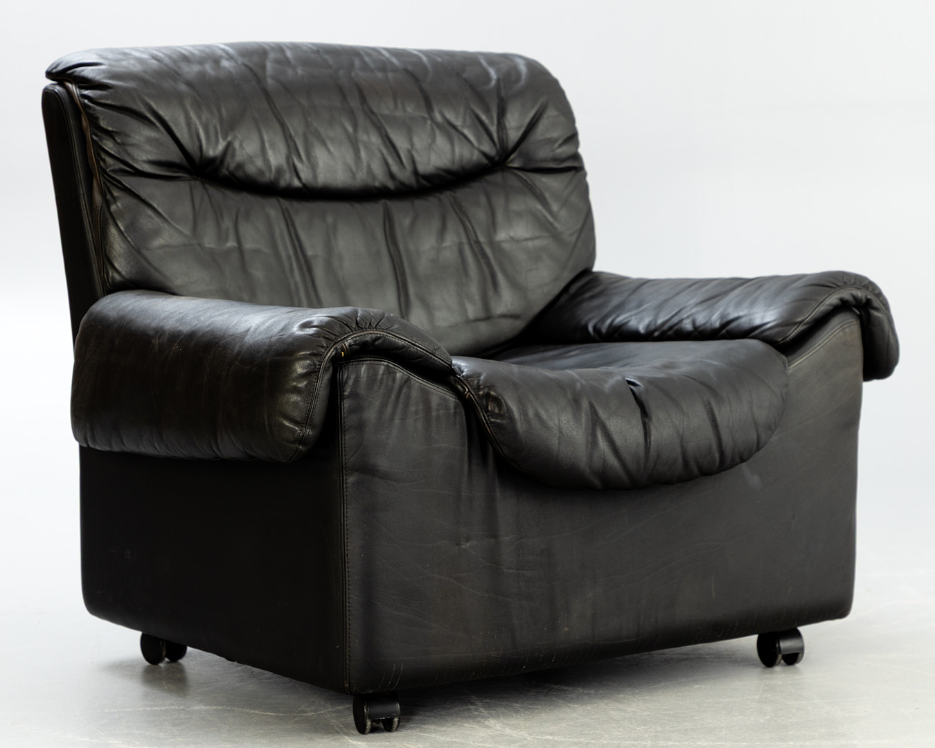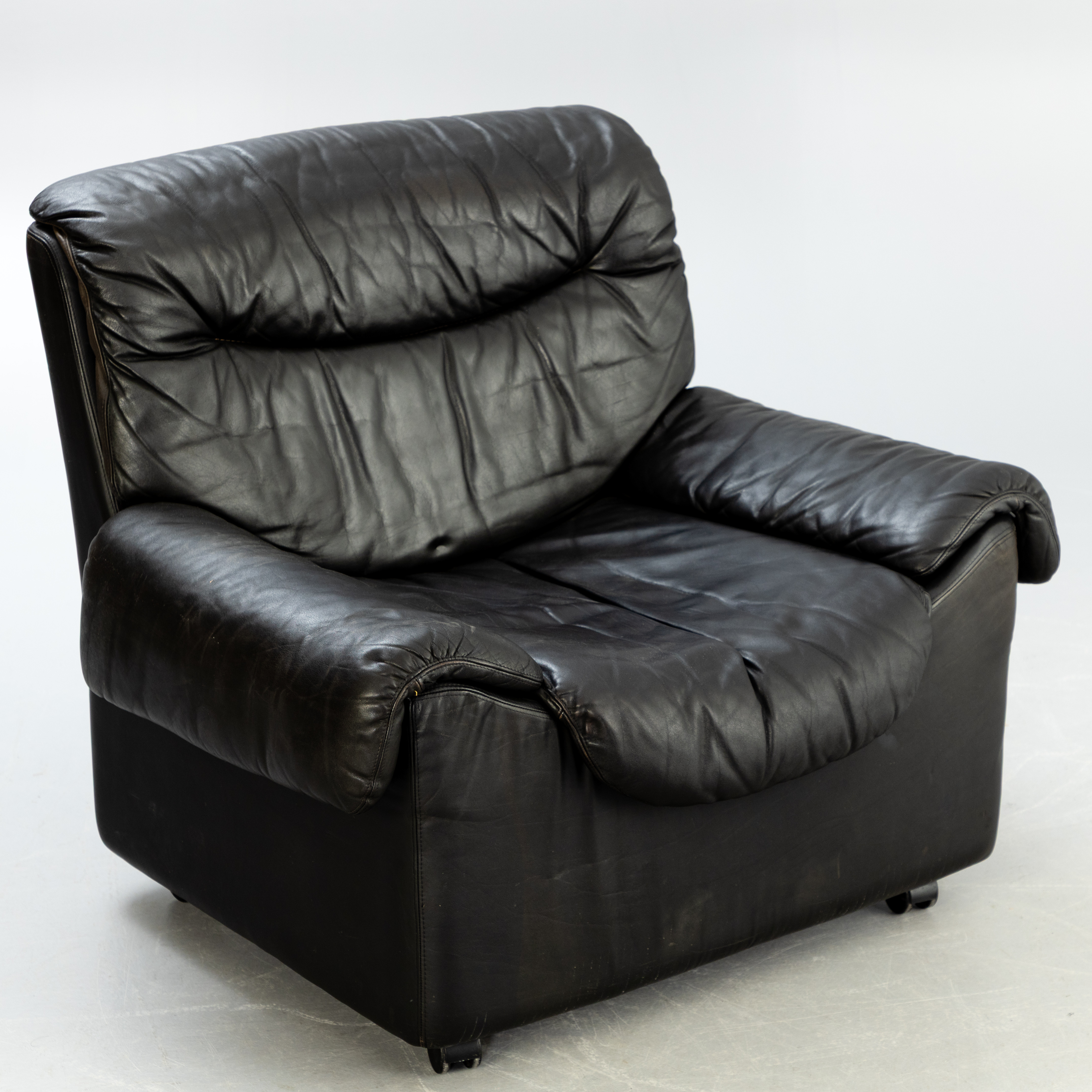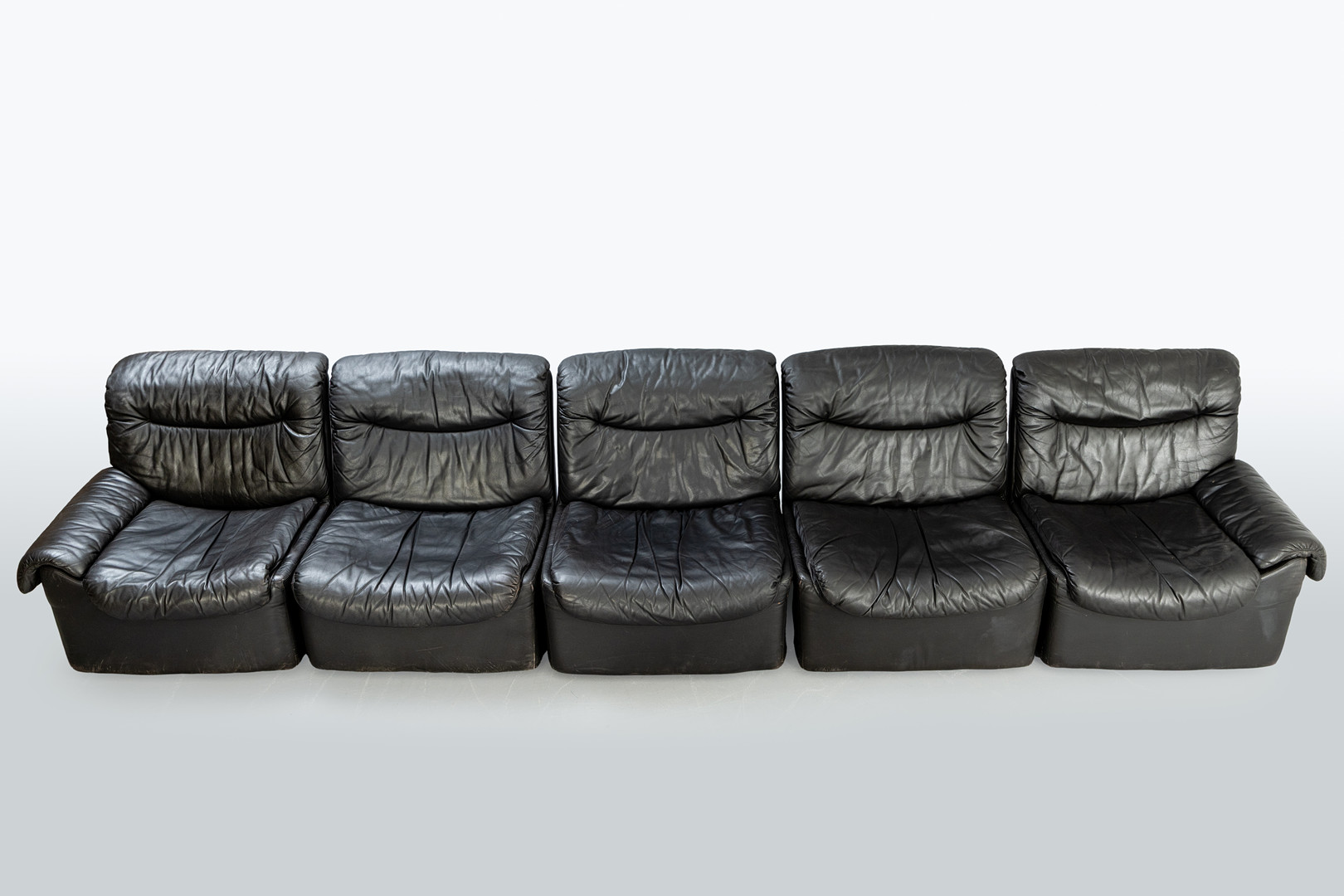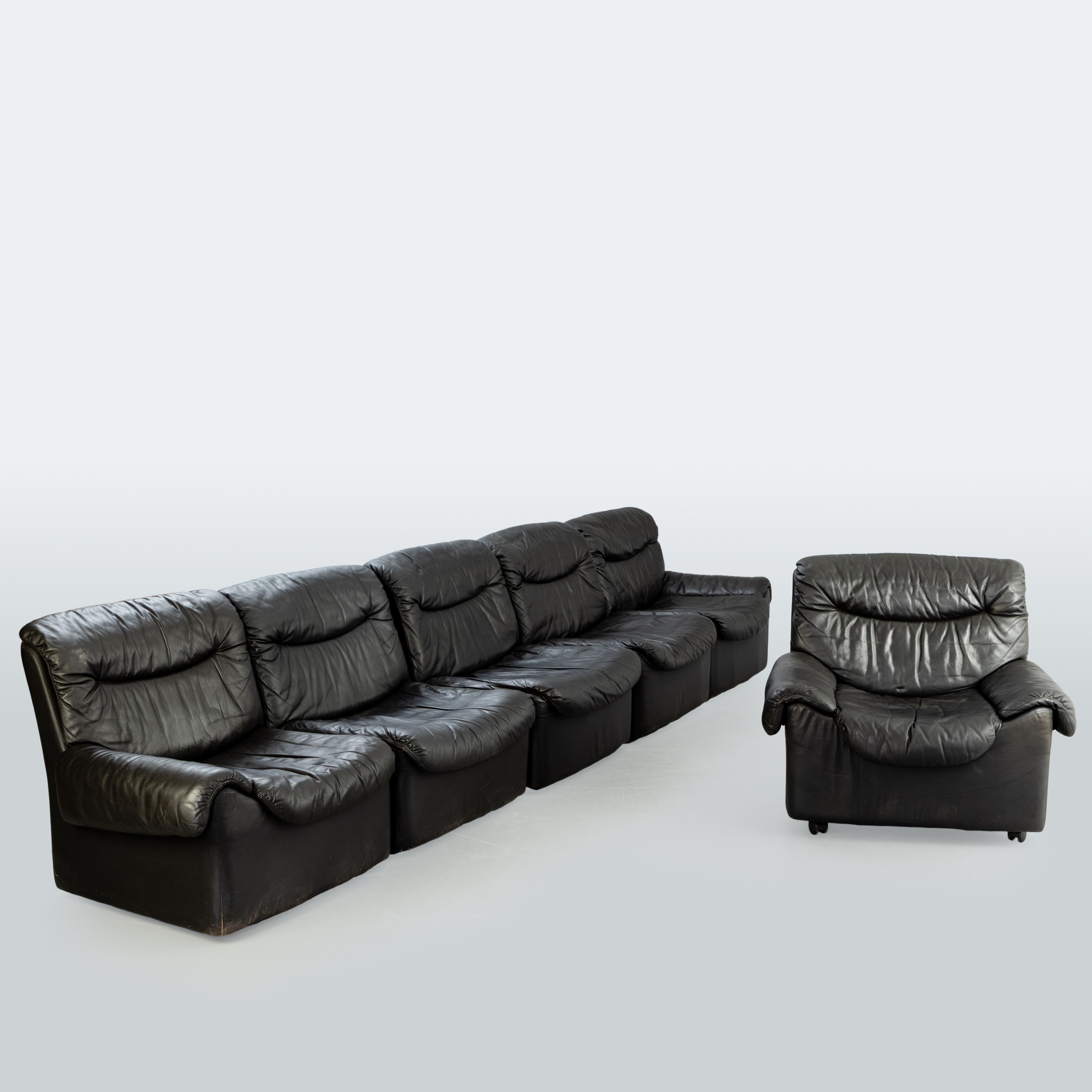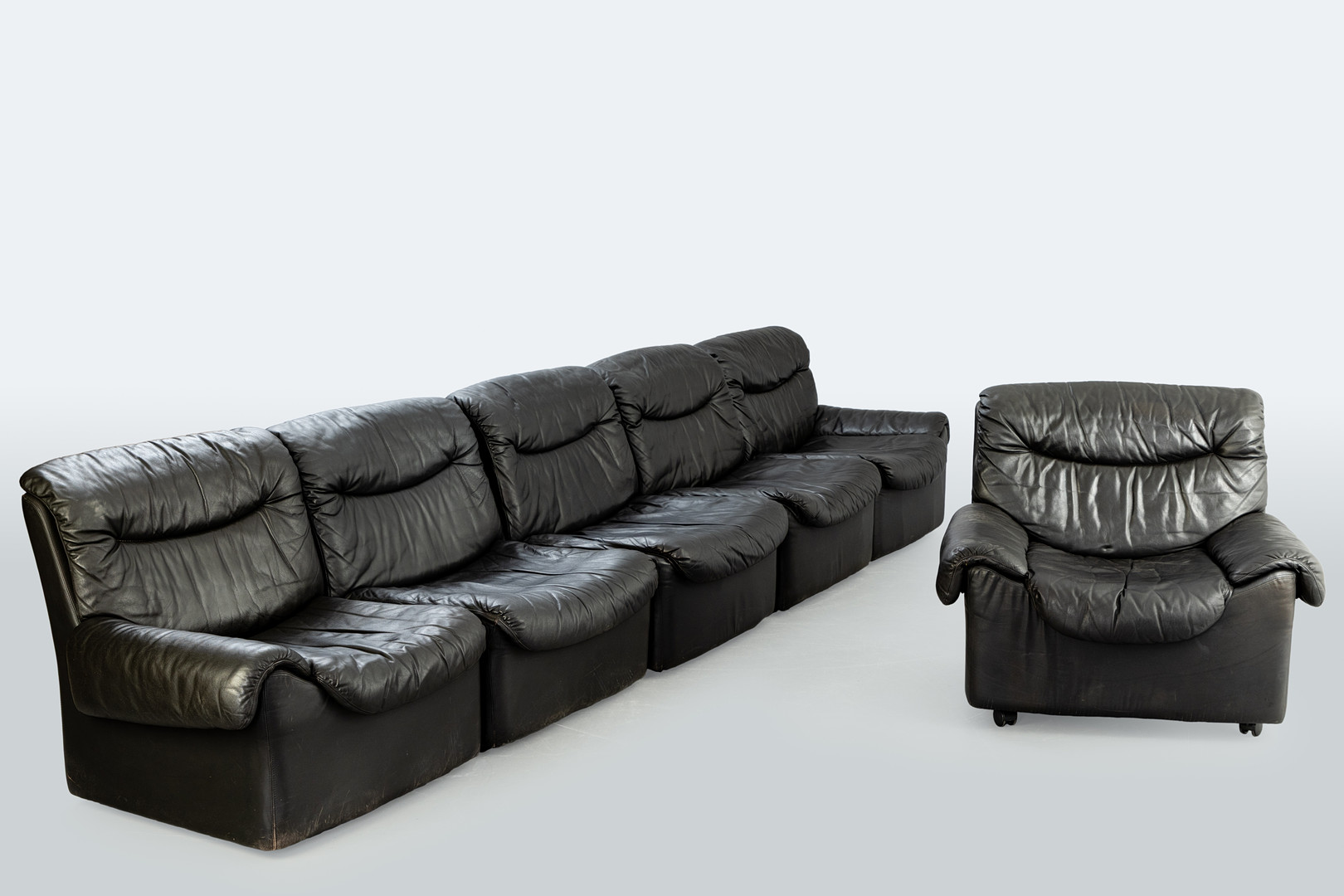 4446624. Sofasæt/Modulsofa, sort læder. 6-delt sæt.